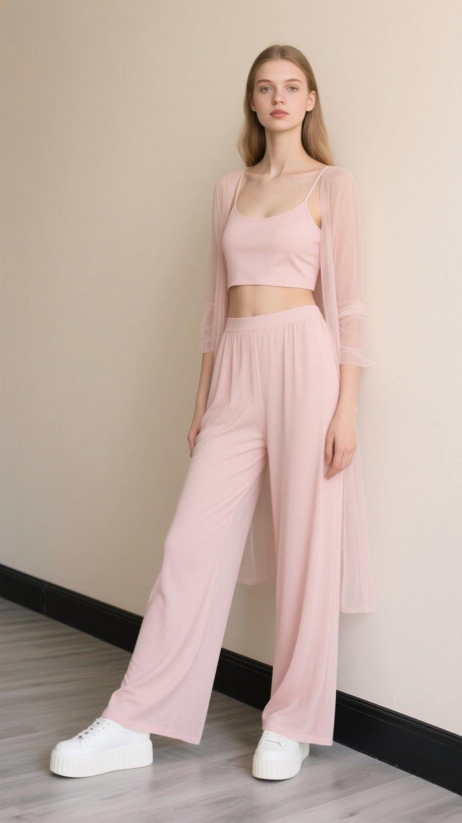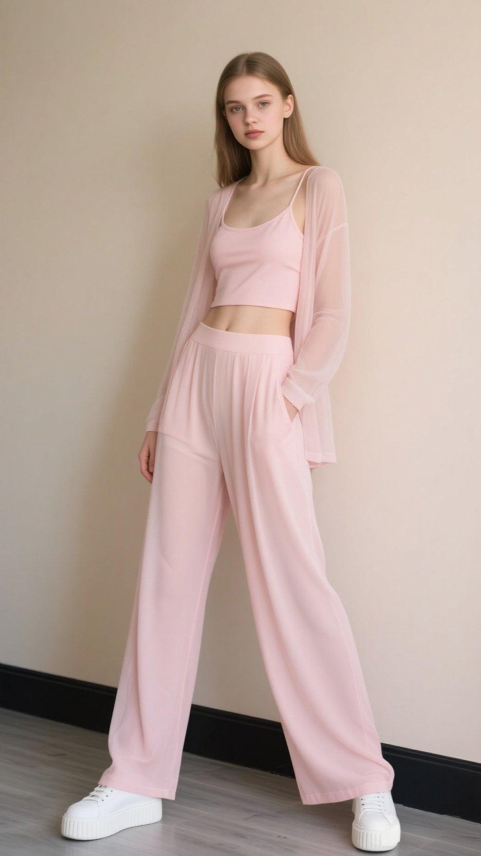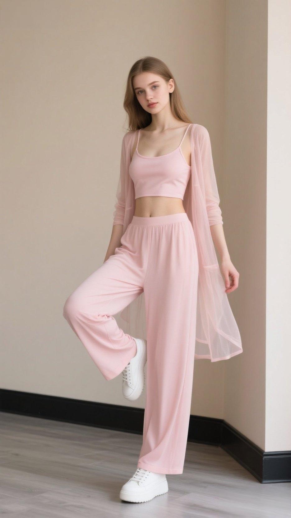 粉嫩穿搭指南💕温柔甜美的粉色套装,搭配白色运动鞋,轻松打造休闲时尚感!温柔懒人时尚穿搭 嫩粉色系穿搭