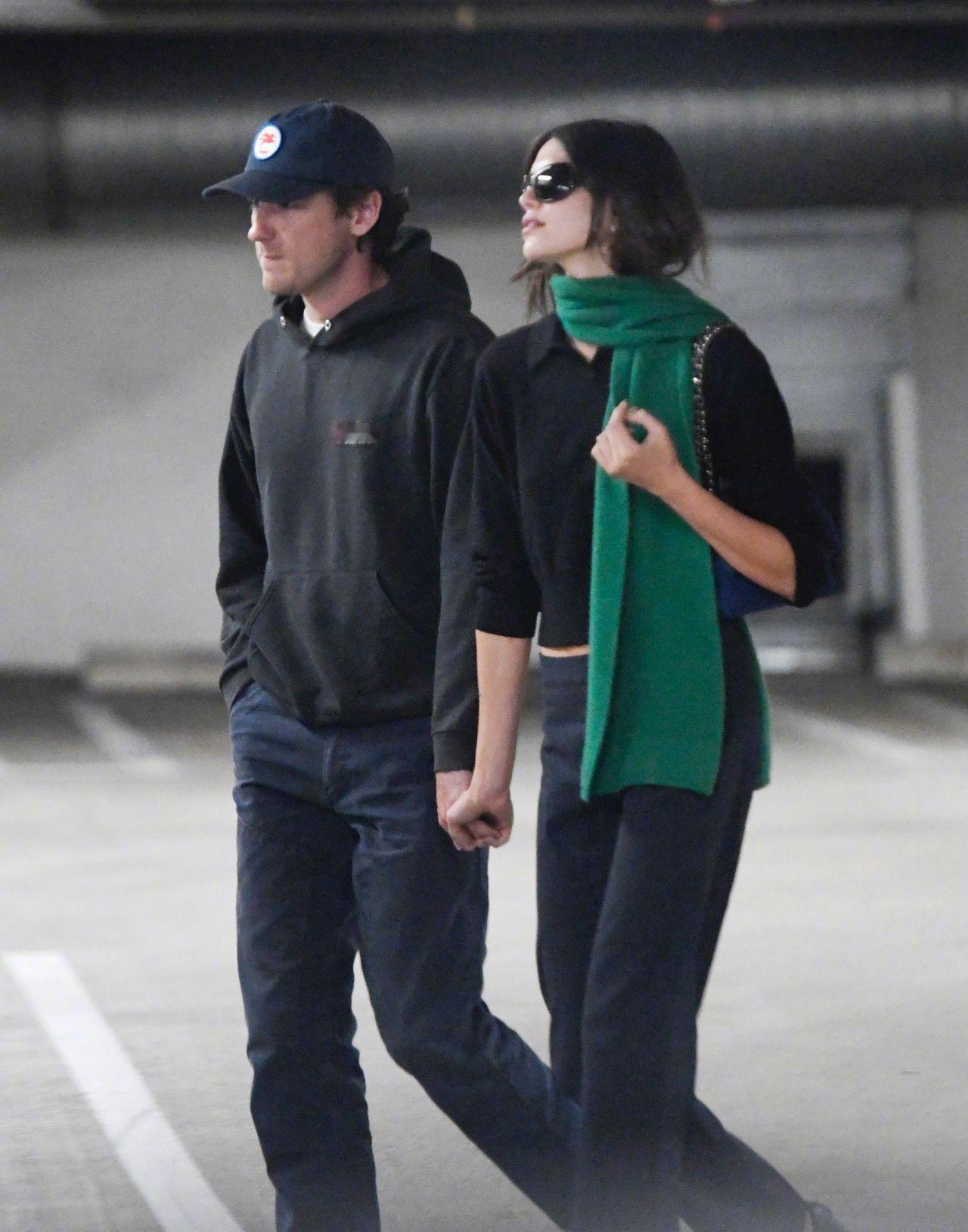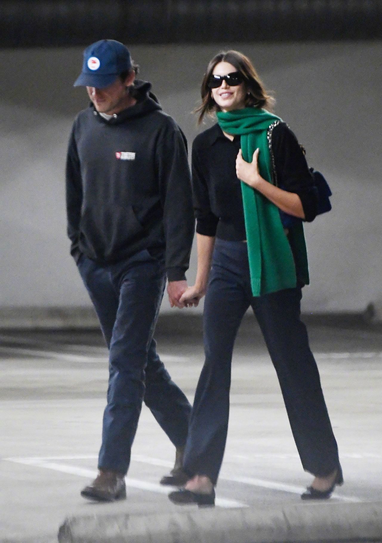 Kaia Gerber与男友刘易斯·普尔曼在洛杉矶手牵手漫步被拍。简单的一身,因为绿色围巾的随意一披,巧妙的打破了视觉上的沉闷。脚穿Repetto 芭蕾平底鞋,肩背Chanel 经典翻盖包,佩戴Thistles Atlas太阳镜。NARS刚刚宣布Kaia Gerber出任全球品牌大使。附一组前几日健身完离开离开洛杉矶Josen Massage按摩店的街拍。这腿真是羡煞人了。米拉服饰解析