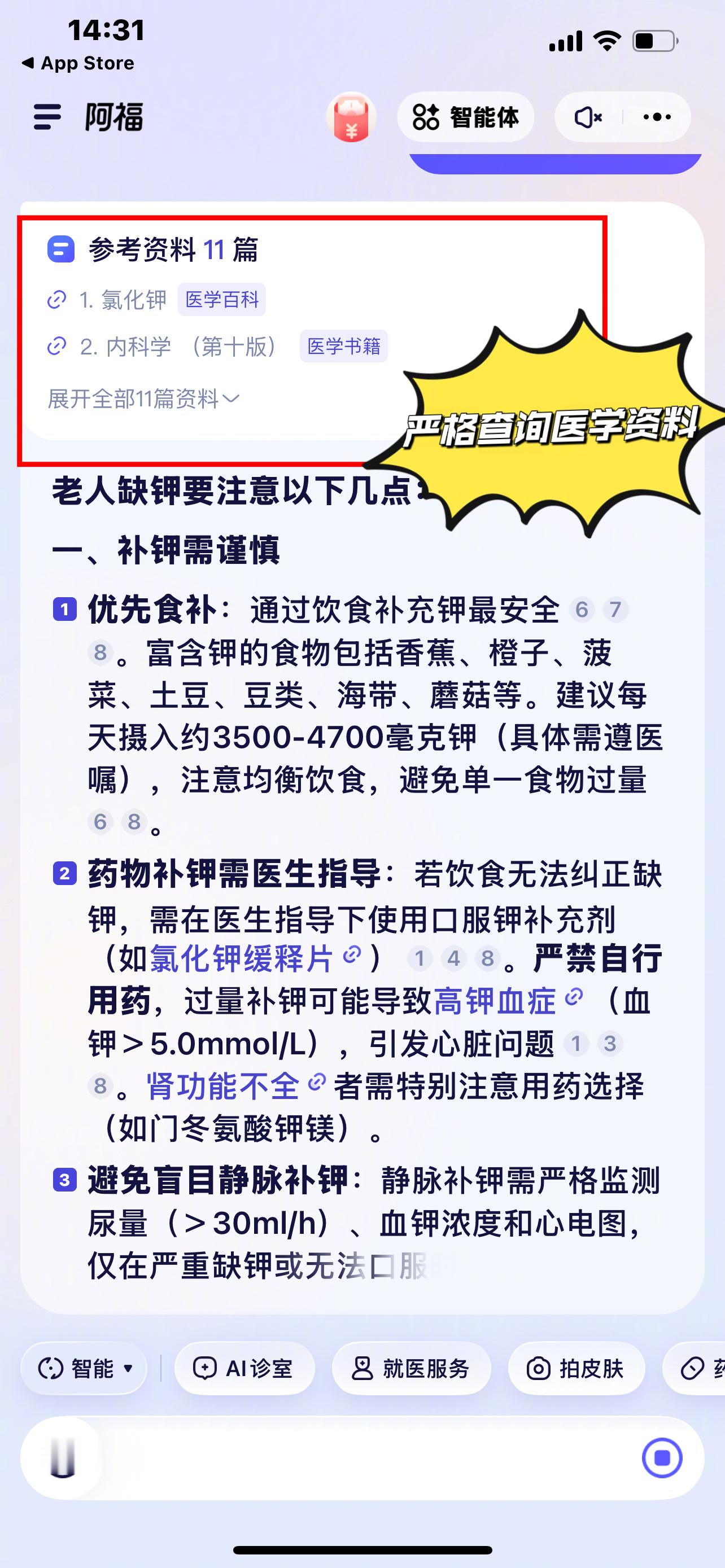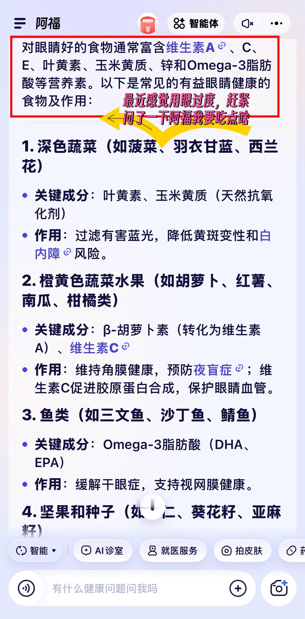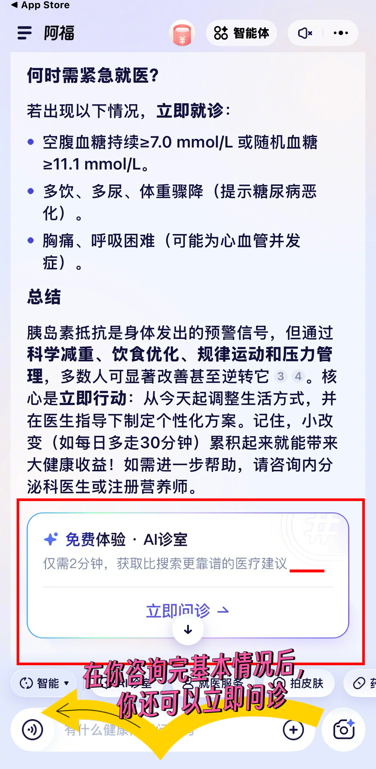 AI医生朋友阿福来了 前两天看到一段话,大意是:在当下这个时代,真正的红利只有一个——就是保持身体健康!因为现在的人卷的已不再是工作、房子和车,而是好身体、好心态和高质量睡眠。在这样一个信息过载的时代,当别人焦虑失眠时,只有你能吃得下、睡得好、情绪稳定、精力充沛,那你就拥有了这个时代最稀缺、最硬核的“资产”。而科技爆炸带来的寿命红利,也只有真正活得足够长、足够健康的人,才能接得住。我真的太同意这一说法了,有什么都没有比有个好身体更重要!今年夏天看到蚂蚁集团推出AQ后,我第一时间就给父母和自己都下载了。现在,老妈稍有点风吹草动、不舒服就会第一时间问它。老爸体检测出缺钾后,除了按医嘱吃药,他还主动问AQ日常饮食该怎么补钾,现在每天都会自觉吃香蕉🍌补钾(以前怎么劝都没用,因为他不爱吃香蕉)。最近看到AQ升级成了蚂蚁阿福,会结合过往记录和健康档案,给出更有针对性、也更精准的建议,对父母来说就更加友好了。加上我父母本身属于学习型,教会他们怎么用之后,现在已经很习惯“有事先找阿福”。尤其偏爱AI问诊功能,AI 给出的回复清晰、系统又科学,比自己乱搜索问人靠谱多了。对他们来说,有了它就像身边多了一个随时能咨询的健康助手,还会结合过往的健康状况给出针对性的建议。而且阿福还能像真人一样追问,爸妈有时候只知道自己“头疼”、“腰痛”,但说不出是前额疼还是弯腰时疼、有没有伴着恶心或发麻,它就会一步步引导“描述一下具体的区域?” “疼的时候有没有伴随其他症状”帮着梳理清楚症状。而我自己,则是直接把阿福当成了个人健康朋友。日常控糖、饮食调整、定制运动方案,都会先问问它,再结合自身情况慢慢执行。整体用下来,我最大的感受是:健康管理不再是临时抱佛脚,而是很自然地融入到了日常生活。而每一次咨询后,都能让医学常识储备增加一些,受益匪浅。真的很推荐大家给父母,也给自己下载一个。AI 对现代人的帮助可以说是巨大的,尤其是这种健康类的AI。你完全可以让它为你所用,成为贴身的健康朋友。父母不会打字也没关系,直接语音输入就好,它连方言都能识别,对长辈非常友好。说到底,在这个时代,照顾好自己,是最值得的投资;照顾好家人,是最踏实的安心。愿我们都能把健康握在自己手里,活得长久,活得踏实。AI医生请回答 戳此下载蚂蚁阿福