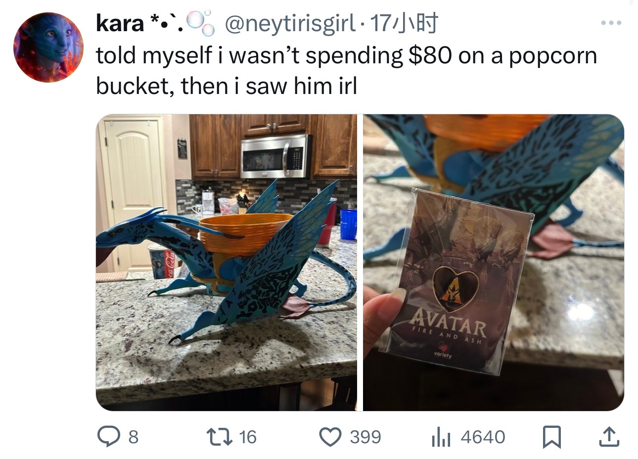 才发现万达院线卖的《阿凡达3》爆米花造型桶是北美AMC和Regal影院同款,北美卖80美元,万达卖299元(限量1500件),你会买吗?