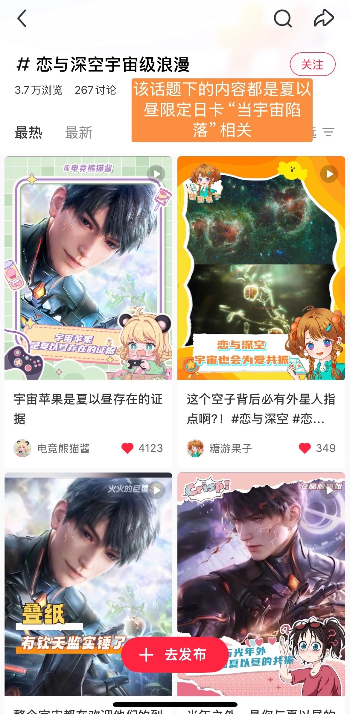 还以为朱泼找到了什么有力的东西来装,原来是4.0更新的时候,官方buy的通用广,夏以昼同样有用婚服卡pv做素材的广,同样用了「宇宙级浪漫的一集」做宣传词,图1 的朱泼真是丢人现眼🤣恋与深空宇宙级浪漫的话题只有带夏以昼限日pv单独宣发的yx红稿,怎么办呢,这就是官方给和宇宙强关联的正统科幻男主的排面啊,知道牢朱从没有过这样的待遇,朱泼找个地方跳了吧 |