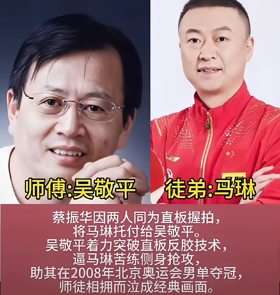马龙的师傅是秦志戬刘国梁的身份是蔡振华马琳,王皓,樊振东他们的的师傅是吴敬平。虽然这些奥运冠军们都已经足够厉害了,但是在我看来,他们的师傅才是真正的厉害的人。他们能够培养一个奥运冠军出来,我们所有人都不得不承认,他们的实力绝对是毋庸置疑的。