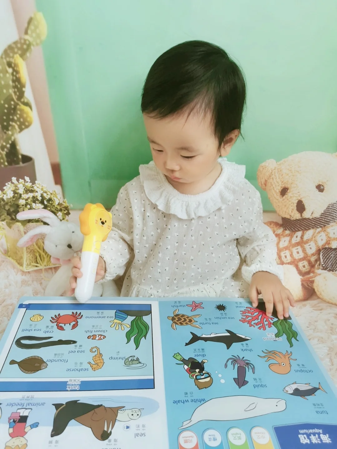 她一岁以后,我就给她入手了趣威AI点读笔,双语点读小百科套装📕️,这样可以更系统的教她认知这个世界~陪她用的这几个月,越发觉得这个太超值了,比我们零散的教她好太多了,各种动物的叫声啊乐器的声音我们根本就不会模仿😂