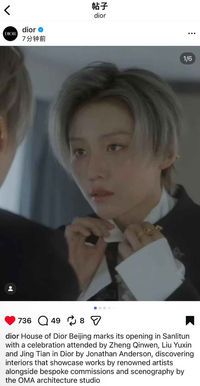 北京迪奥之家开幕活动,迪奥外网官方黑X首位认领、单人认领,ins图频封面认领均为刘雨昕。
