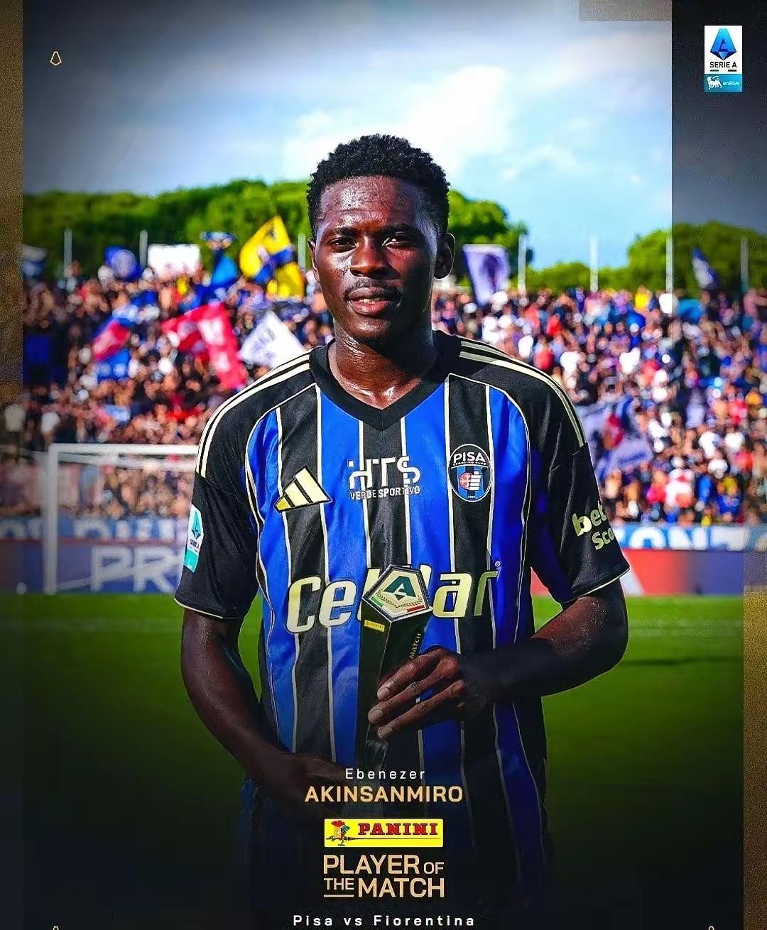 赎身?国际米兰外租至比萨的21岁尼日利亚中场阿金桑米罗,本赛季在比萨表现出色,代