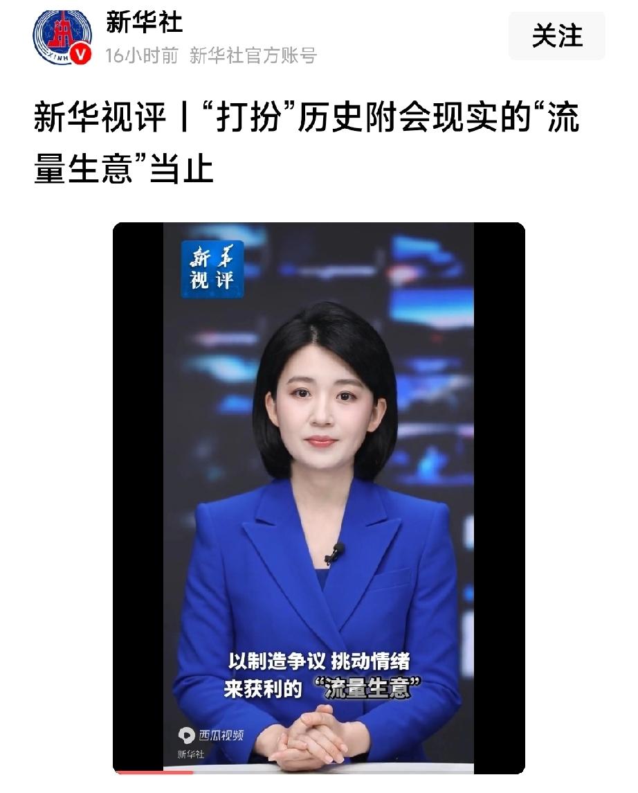 那些什么瓜的,像🥒黄瓜、冬瓜、南瓜的粉丝注意啦。 新华社评论指出:一些深入剖析历史的自媒体,抛出看似视角新颖的观点,在网络上引发讨论。看似是独特见解、另类解读,实则是靠挑动情绪来牟利的流量生意。 有人说咱家冬瓜可厉害了,不然粉丝也不会不断增多,如今都有500多万粉丝了,这就是最好的例证,说明大家都喜欢她,她说的对。你别说这大冬瓜有500多万粉丝了,那受过宫刑的司马迁的后代司马南有多少粉丝?拥有高达3000多万粉丝的,说没就没了。请问司马北如今人在哪里?一切都是为了流量,都是为了生意。