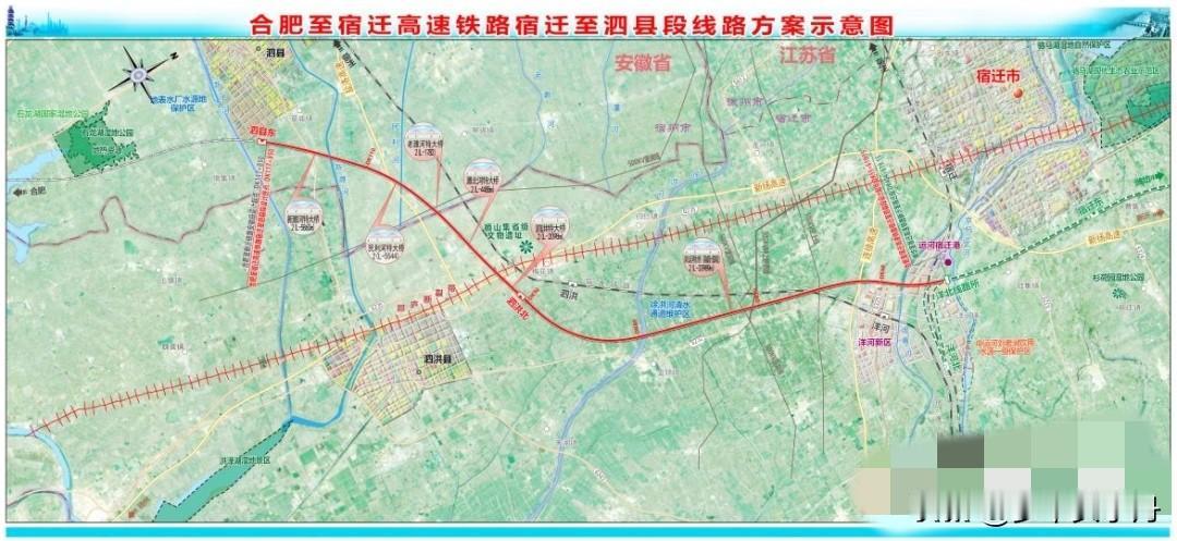好消息!近期备受关注的跨省高铁项目迎来实质性进展——新建合肥至宿迁高速铁路宿迁至泗县段正式启动前期规划论证工作。这条串联苏皖两省的重要交通动脉正在加速推进,看看经过你的家乡吗? 据悉,项目线路规划起点位于江苏省宿迁市宿城区在建潍宿高铁洋北线路所,向东南延伸,终点设于江苏省宿迁市泗洪县与安徽省交界处,总里程达44.676公里。值得注意的是,该段铁路将采用新建客运专线铁路建设标准,设计时速高达350公里/小时,这意味着未来从宿迁到泗县的车程将大幅缩短,实现半小时交通圈的愿景。 这条高铁的推进也折射出我国高铁建设的新趋势——在完善主干网络的同时,更加注重省际"断头路"的连通。宿迁至泗县段虽里程不长,却是打通省际通道的关键"最后一公里",随着论证工作的深入,这条穿越洪泽湖西岸的高铁线路正逐渐从蓝图走向现实。