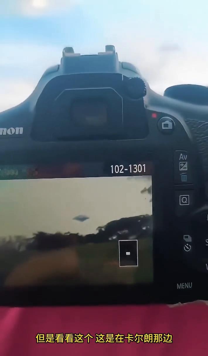 难以置信。 伙计们,说真的不开玩笑,我不知道你们能不能看到这里的小黑点,看我来实时放大一下看。看我的相机拍到了什么?看看天上那个东西,老天,我刚刚拍到了这个,如果我拍到了,我可不想再拍照片了。看看这个老兄,我的相机没拍好,我都抖了老兄。 但是看看这个,这是在卡尔朗那边,我不知道你们知不知道那座山,我又拍了一张照片给你们看看,看那个物体在天上的时候,太不可思议了,让我看看我这里还有没有另一张照片,没找到这里,但我能找到的最接近的就是这个了,难以置信。