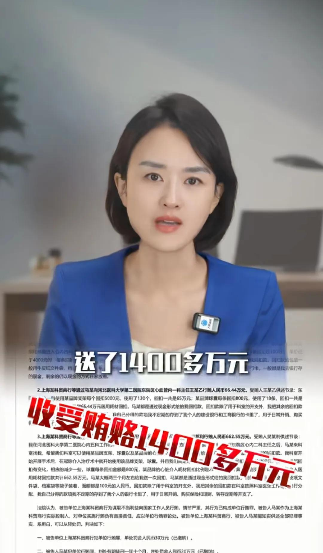 据网传,上海某医疗器械商,为了让医生多往病人体内安装其推销的心脏支架,竟然向河北一所医院长期大量行贿。 院长受贿1440多万元,一个科室主任也受贿高达660多万元。 一个心脏支架就能从患者身上诈取5000多元,这真的是听得人汗毛倒立,背脊发凉,又悲伤无奈。 人民医院成了榨取病人钱财的魔窟,白衣天使成了爪牙。 如今这些白衣天使,想像起来全是青面僚牙,医院成了魔洞妖谷,尽是白骨森森。 社会的反腐好像走入了一个奇怪的循环,腐败犹如割韭菜,一茬一茬的割不赢,各行各业都是腐不堪言,除了农民是一身清白外,没有一行是干净的。 安这种腐败形式来看,不拿出伟人时代的反腐魄力,这腐可能是很难清除干净的。 腐败不是除不净,而是没有除净的决心。 只要把伟人时代的反腐决心拿出来,在这个网络时代,不要一年功夫,各种机关单位,大官小员,一定会变得清廉守法,社会一定会变得风清气正。