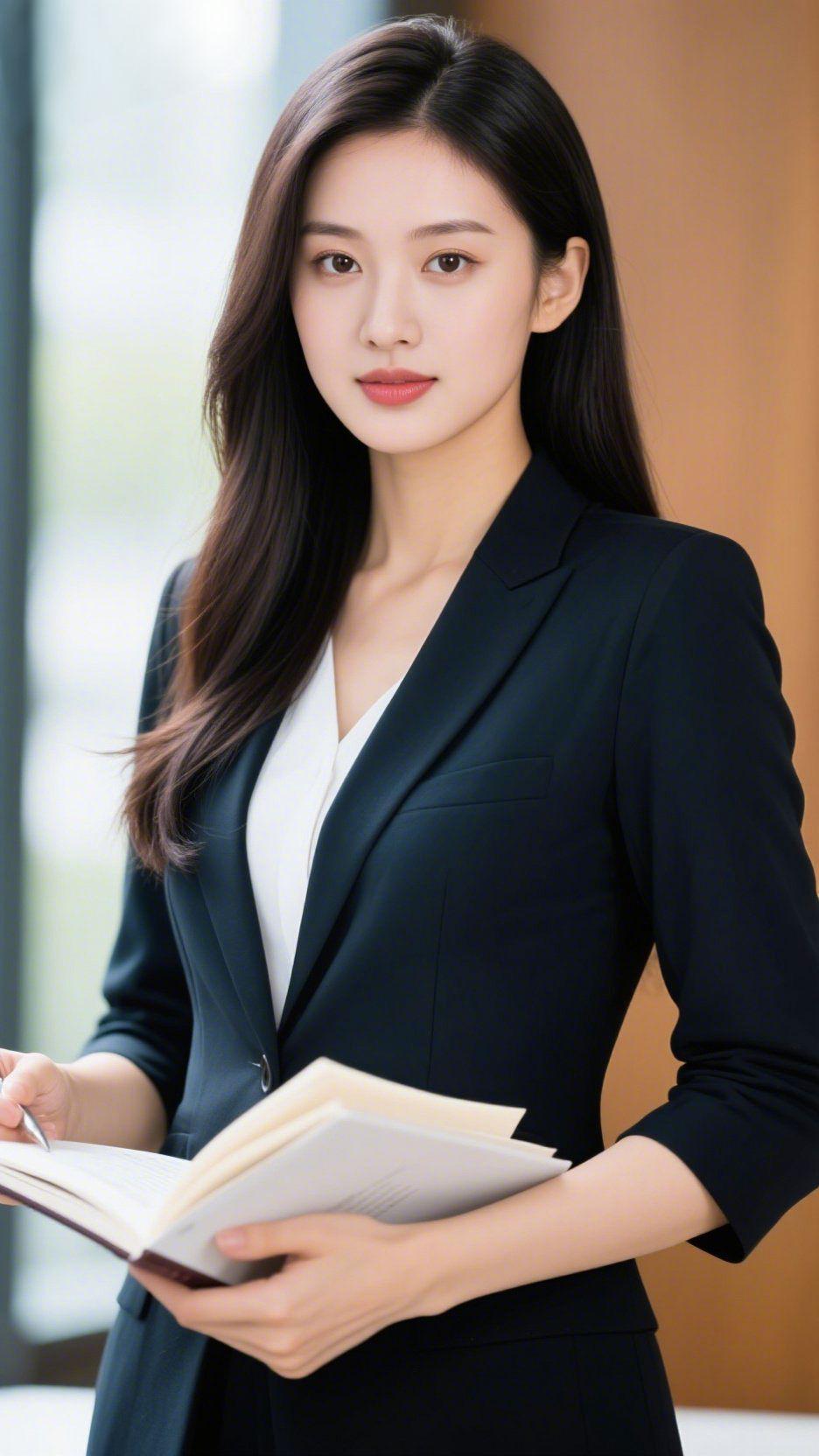 《墨西装里的从容》 晨光轻落案头时,她静立在办公区的舒展里。 墨色西装裹着妥帖的挺括,内搭白衬衬出柔和,似将职场的利落与温雅揉进了衣装。长发垂落肩侧,发梢随抬腕的动作轻晃,衬得袖间弧度愈显从容,笔尖落纸的轻响里,漫着不慌不忙的笃定。 她抬眼时,瞳仁里盛着浅亮的光,唇畔淡色舒展,成了这方空间里最清和的一笔。风掠书页,西装的质感裹着纸张的暖——不必追赶节奏,只这一立,便让职场时光浸在了稳而柔的意趣中。 职场通勤穿搭 干练氛围感