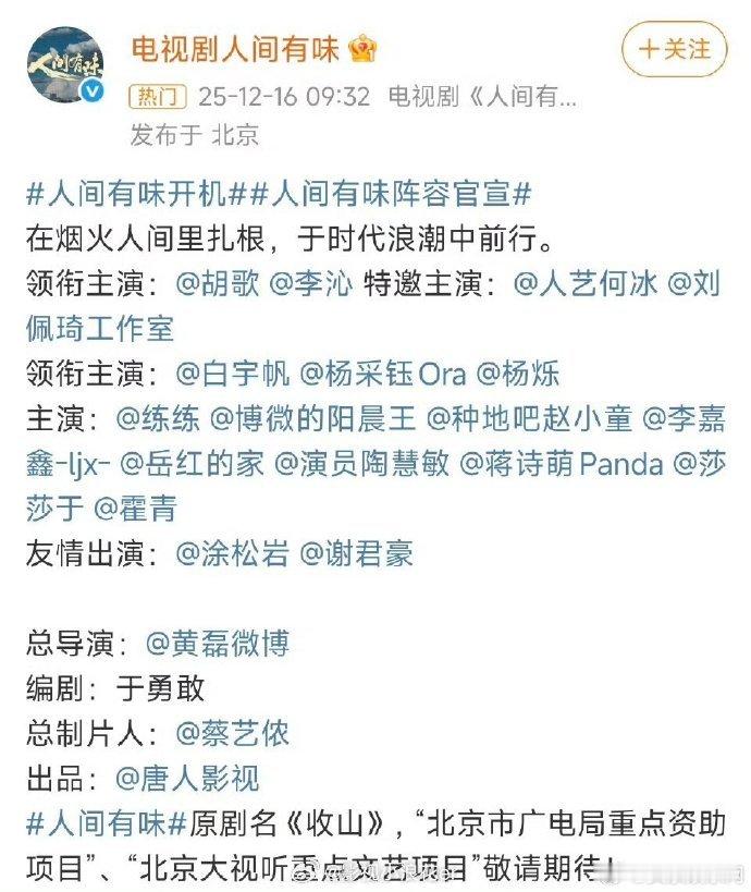 胡歌李沁新剧导演黄磊胡歌李沁人间有味来了 黄磊执导的《人间有味》亮点足,胡歌李沁首搭,老戏骨加持,餐饮题材新颖吸睛!