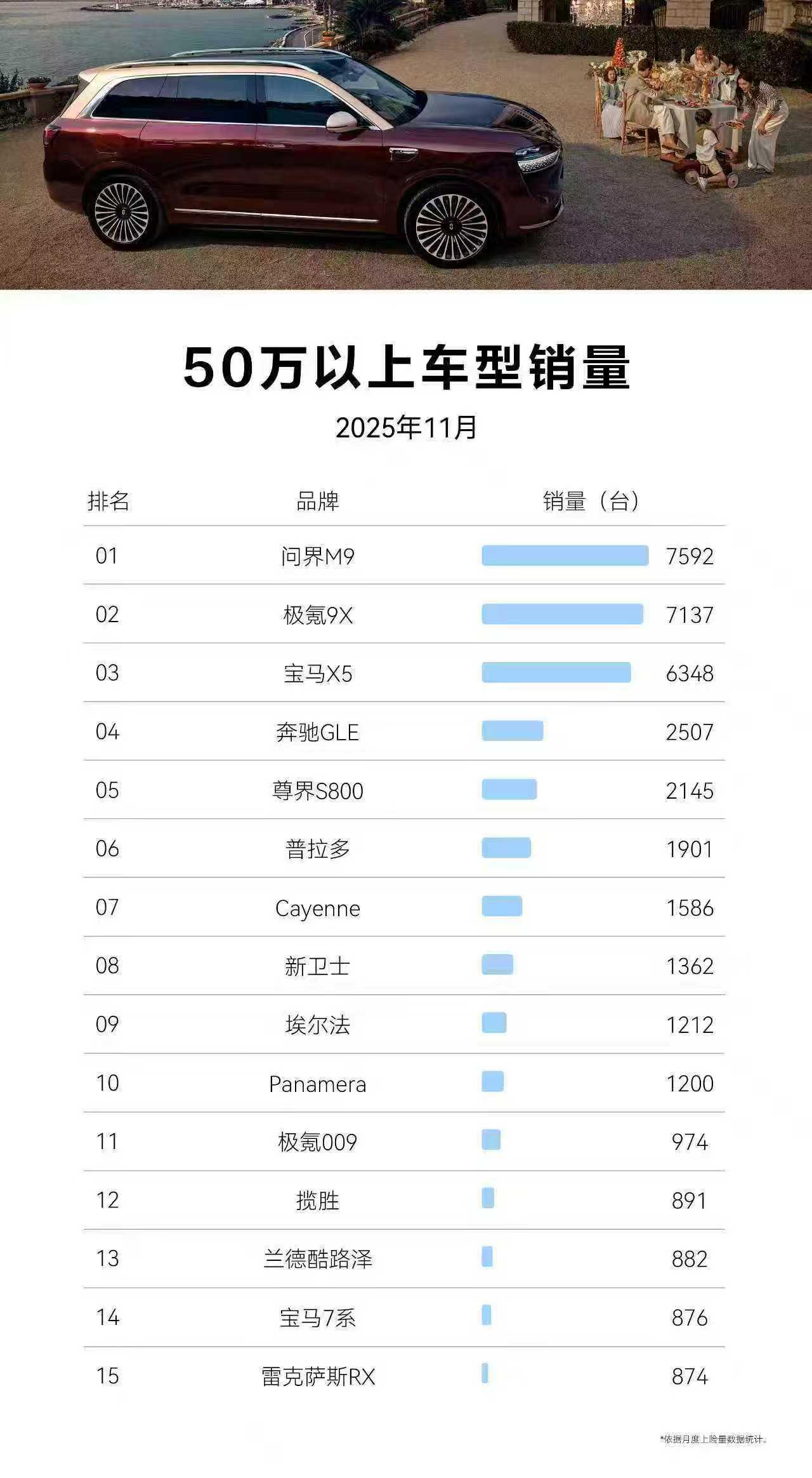 问界M9的两年坚守,重塑高端市场价值标尺 问界M9上市两年累计交付突破26万辆的成绩,以及11月上险量数据领跑,正在重新定义高端汽车市场的价值标准。当众多品牌追逐短期销量时,问界选择用时间沉淀价值,这份坚持最终转化为市场持续领先的表现。在高端汽车领域,真正的竞争力来自长期积累的用户信任和体系化运营能力。 观察市场发展,极氪9X作为新晋产品展现出了积极的参与态度。新车入局既给消费者带来更多选择,也为细分市场注入了新的活力。客观而言,单月销量数据仅能反映市场初期反应,建立持久的市场地位需要更长周期的验证。问界M9的成长轨迹恰好证明了这一点。 从行业维度看,多个对标问界M9的产品相继问世,这种现象本身具有重要启示意义。在新能源汽车蓬勃发展的今天,一个产品的成功不仅体现在销售数字上,更在于其对行业发展方向的引领作用。良性的市场竞争有助于推动行业标准升级,促进产品品质的整体提升。问界M9