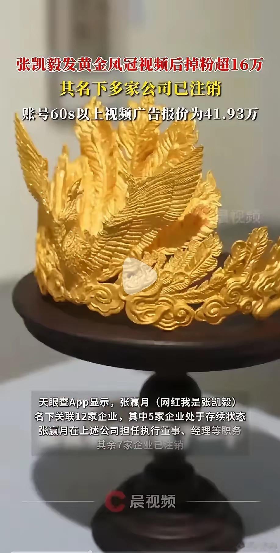 张凯毅旧照因为这4斤重黄金凤冠才知道网红张凯毅,名下十多家企业、千万粉丝,这实力是真的牛凤冠被小朋友打翻弄坏,她天天上网问网友怎么办,这波操作真的不算变相炫富吗?想说做人真得低调点,财不露白这句话真的是真理!这不就有人开始考古她旧照了有时候流量会引发反噬!张凯毅旧照