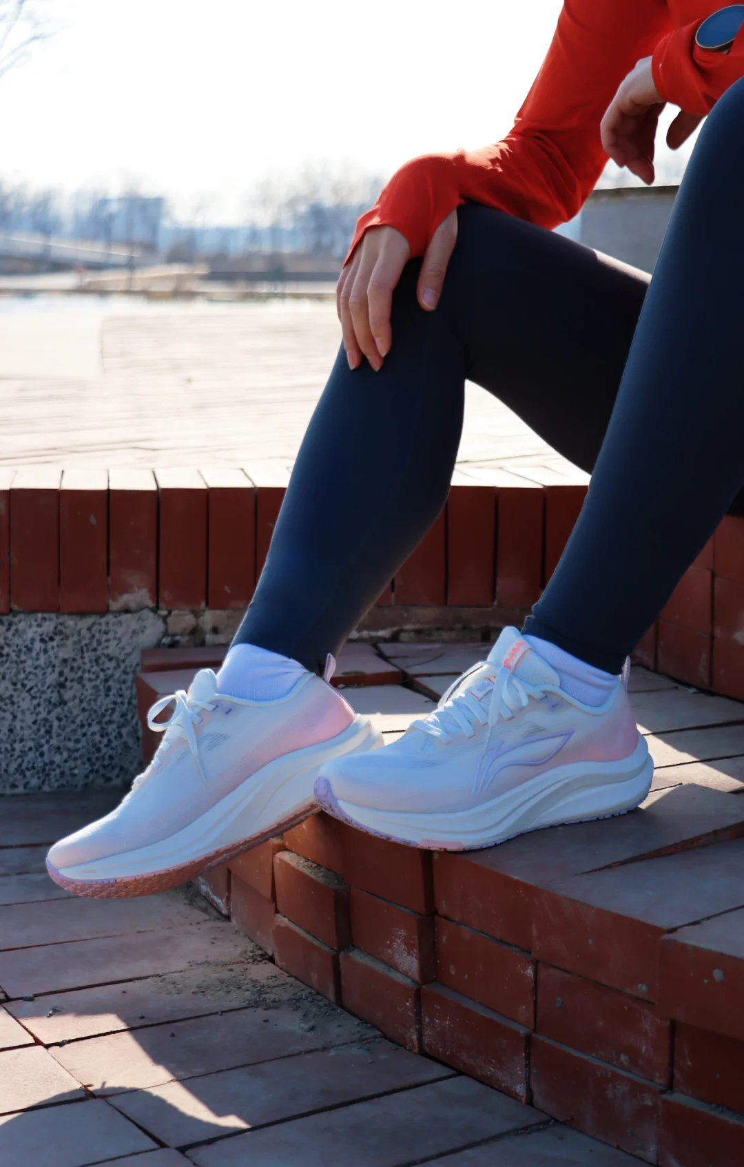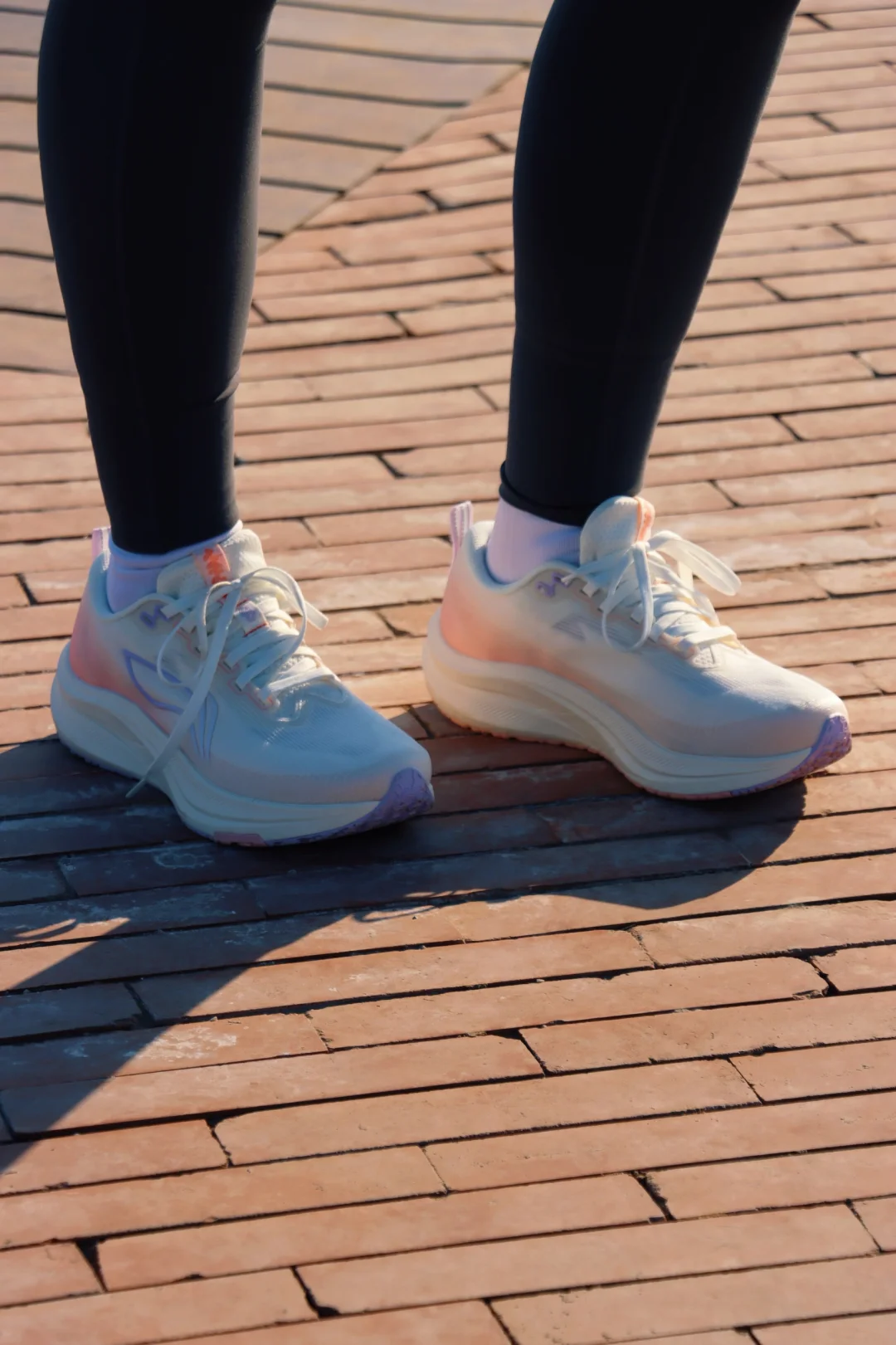 平时穿37码的鞋,选大了半码也很合脚,不存在鞋码不准问题,有明显的足弓支撑感和足跟包裹感,就这两点,让脚很有安全感,鞋子很轻,没有额外负担,白色很亮眼、干净,亮色跑步穿搭不显串色