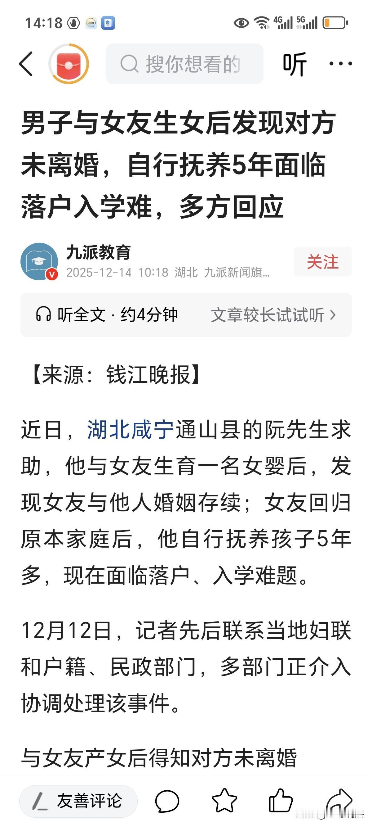 不生也是一种善良!湖北咸宁,一53岁男子和37岁女友同居,女友生下8斤的女儿,可上户口时,要他们出示结婚证,女友这才说了实话,她压根就没和丈夫离婚,于是两人商量,等女子离婚了俩人结婚,谁知被女子丈夫发现,丈夫要告她重婚罪,女子害怕,立刻回归了家庭,男子不愿意了,他要女子带走女儿,他每月给1000元抚养费,女子怕丈夫找事,坚决不同意,男子急了,要把女儿扔福利院: 我50多岁,工资7000元,背着房贷,两个儿子30多没结婚…… 阮先生孤身一人,他在外打工,每个月拿着7000元的工资,他买了房子,背着房贷,房贷还完,他所剩无几。 他的家里,有两个30岁的儿子,儿子娶不到媳妇,阮先生无可奈何,他没有钱,对儿子的婚事无能为力。 可是尽管如此,也没挡住他谈恋爱的脚步,他1972年出生,年过半百,他单身了多年,早就希望再找个女人。 终于一天,他认识了郭女士,郭女士1988年生人,也是单身,俩人一拍即合,很快就搬到了一起。 日子久了,俩人有了感情,阮先生想结婚,郭女士却推三阻四,阮先生没有多想,以为只是迟早之事。 2020年的时候,郭女士意外发现,自己已经身怀有孕。 十月怀胎,郭女士生下一个8斤的女儿,小家伙出生,阮先生十分的高兴。 他以为自己老来得女,还能娶下郭女士这么年轻的媳妇,他得意洋洋,每天忙着照顾女儿。 谁知他高兴的太早,到了给女儿上户口时,工作人员要他们出示结婚证。 可他们没有,回来之后,郭女士才说了实话,她压根就没和丈夫离婚,因此没办法和阮先生登记结婚。 阮先生傻眼,可他又一想,虽然郭女士没有离婚,可是她毕竟和自己生活了这么久。 更何况还有女儿,于是他和郭女士商量,等到她办了离婚,俩人再去领结婚证。 郭女士带着女儿,回到了阮先生的老家,她原本想着,等女儿再大一点,她就回家和丈夫离婚。 谁知郭女士的丈夫在家,他左等右等,等不到郭女士回来,丈夫四处打听,2023年,丈夫得知,郭女士已经和别的男子跑了,还生了孩子。 丈夫一气之下,托人告诉郭女士说,如果她再不回来,就会到法院告她重婚罪! 郭女士害怕了,她找人一问,重婚罪是要被判刑法,她心里着急,扔下女儿立刻跑回了老家。 她回归家庭,和丈夫重归于好,丈夫不在追究,只要她肯留下,过好以后的日子。 阮先生不答应了,你扔下女儿,自己跑了,我还要在外面打工,年幼的女儿由谁照顾? 阮先生先生向郭女士提出,他每个月给郭女士1000元抚养费,要她带走女儿。 可郭女士不同意了,她和丈夫重修旧好,一旦带着女儿,丈夫肯定会不高兴。 阮先生没了办法,只有把女儿托付给了自己的大哥,女儿跟着大伯,寄人篱下,父母亲明明活着,可是都当她做累赘,恨不得立刻把她扔了。 时间一晃,5年过去,阮先生偶尔会打视频回家,女儿在电话里叫着爸爸。 阮先生心里难过,他到派出所一问,怎么才能办理女儿的户口。 工作人员表示,需要他和女儿做亲子鉴定,如果证明他们是父女关系,就能给孩子办理户籍登记。 如果鉴定证明,他们不是亲子关系,那就会很难给孩子办理户籍。 可阮先生表示,他没钱和女儿做亲子鉴定,如今他也不想办了,他就想把女儿送到福利院里。 他觉得自己悲催,明明是郭女士生下了女儿,她却撒手不管,害得自己独自抚养,他已经抚养了5年,再也养不起了。 他还表示,他已经53岁,年过半百,已经快要进入老年,他每个月工资7000,还背着房贷。 另外,他还有两个30岁的儿子,早就到了婚嫁的年龄,可娶不起媳妇,他无能为力。 女儿如今,已经5岁,再过不久,就到了上学的年纪,他已经无力支撑,实在养不下去,他想把女儿送福利院里。 相关部门得知了此事,立刻联系了阮先生,会帮助他解决孩子面临的问题。 这件事荒唐至极,自始至终,最可怜的还是孩子,她无从选择,就被不负责任的父母生下。 如今却被亲生的父母视为了累赘,双方都不想承担抚养责任。 有的人想要孩子,可是百般艰难,都生不出来,可是有人生了,却要狠心的抛弃。 这样的人,压根就不配做人父母,生不起别生,这种情况,不生也是一种善良。 《民法典》第1071条规定:不直接抚养非婚生子女的生父或者生母,应当负担未成年子女或者不能独立生活的成年子女的抚养费。 《收养法》第10条、第4条规定:生父母送养子女须双方共同送养;仅当生父母有特殊困难无力抚养时,未成年子女才可被送养,且不得单方擅自送养。 阮先生与郭女士作为女儿的生父生母,无论婚姻关系是否成立,均负有法定抚养义务。 郭女士拒绝带走女儿,阮先生想单方送养福利院的行为,均违反法律规定。 且阮先生月工资7000元,并非特殊困难无力抚养,不符合送养条件。 父母的经济压力不能成为推卸抚养责任的借口,如果阮先生和郭女士拒不履行抚养责任,面临他们的将是法律的惩罚。 关注@王哥说法 多学法律少吃亏!