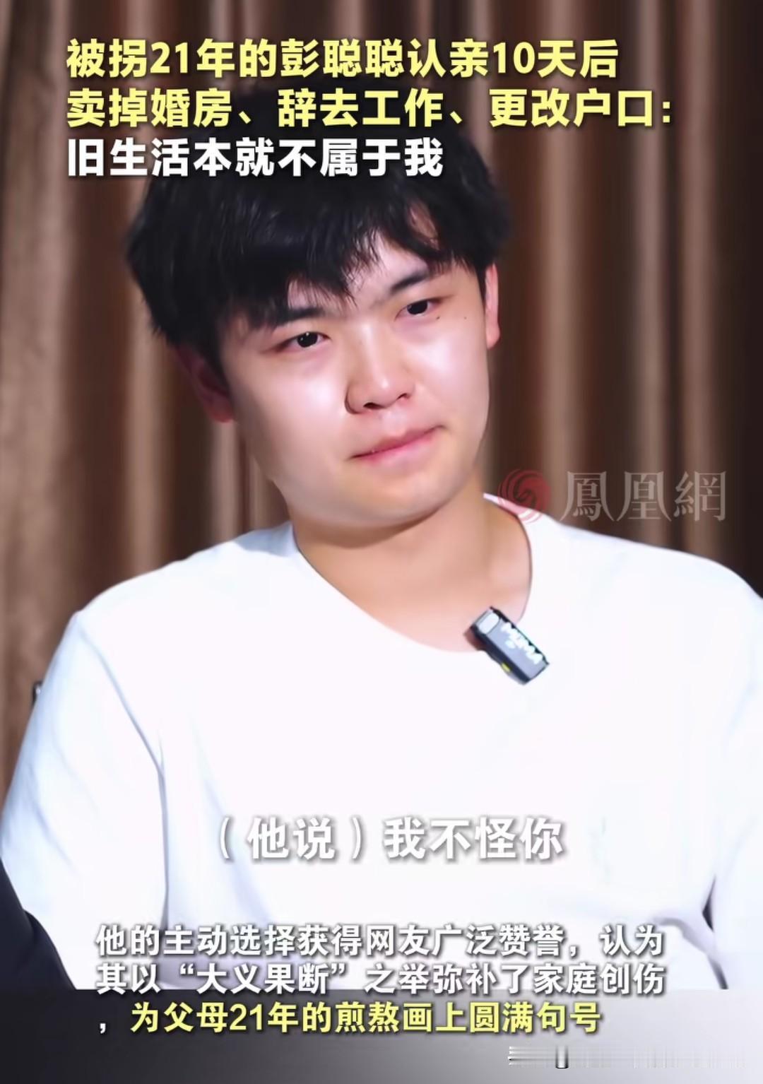 很多的认亲,有些孩子像个白眼狼一样,有些孩子虽然离开亲生父母二三十多年,他依然想念着自己的父母,比如彭聪聪,没有几个孩子会像他如此果断的选择回归原生家庭。 大多数普通家庭在丢失孩子后一蹶不振,每时每刻都在挂念着孩子,寻找孩子,他们人生大部分时间和精力都在寻找孩子,因此耽误了不少事,所以这样的家庭往往在找到孩子后,孩子心里会有点嫌弃,多多少少不愿回归。 像彭聪聪这样,还是比较少见的。这是我见过认亲后,回归最快,最干脆利落的一次了。这是对亲生父母21年牵肠挂肚,煎熬与泪水最好最热烈的回应和安慰。