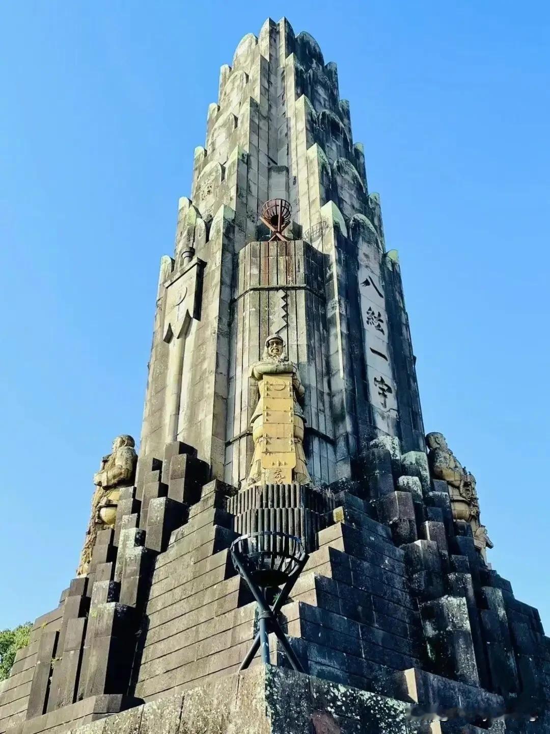 “八肱 一宇”塔:日本在侵华战争期间,掠夺了大量中国文物,像长城砖、泰山石、南京明故宫麒麟浮雕等,还将这些文物用于建造“八肱 一宇”塔,以此炫耀侵略战果,彰显其妄图统治世界的野心。 “八肱一宇”是日本军国主义时期抛出的扩张口号,意思是“天下一家”。 “八肱”源自中国古籍,原本指的是八方极远之地,“一宇”表示统于一尊,也就是天下都由一人统治。 日本军国主义盗用了这个词,妄图把整个世界纳入日本的统治范围,为其对外侵略扩张炮制理论依据,是二战时期日军宣扬东亚战争正当性的宣传话语。