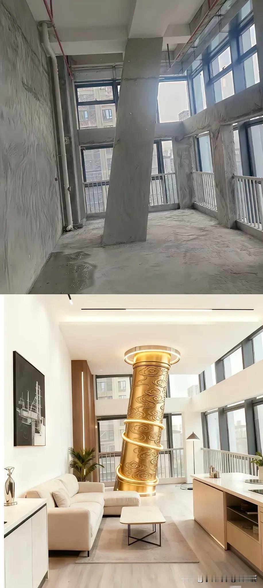 有人在网上问,刚买的房子屋里有这一个斜着的承重墙,像比萨斜塔一样。这个怎么办?有没有天才设计师帮忙设计一下?果然还是零零后的脑子好使,他们把这个斜着的承重墙装修成了这样,看起来毫无违和感。哎,非常好看,这个设计师也只有新脑子好用。