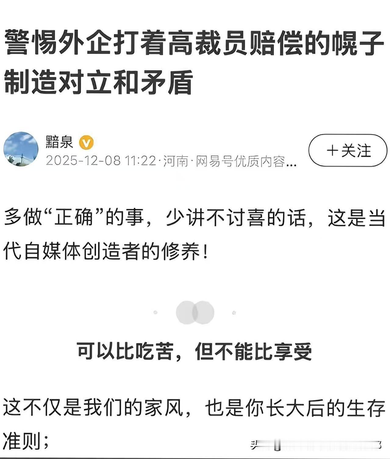 外资裁员给“N+大礼包”,居然成了“居心叵测”?这帽子扣得真离谱! 最近佳能中山工厂关闭,给员工赔了“2.5N+1”的消息刷屏了。有老员工晒出40多万的补偿金,连清洁工都拿了30多万,公司还贴心附上董事长推荐信、联系企业帮再就业。这操作本来该夸一句“体面”,结果你猜怎么着?居然有人跳脚说这是“糖衣炮弹”,指责外企“故意拉高补偿标准,制造劳资对立”。 我真是看笑了!某些人一边喊着“依法治国”,一边把守法企业喷成“居心叵测”。按这逻辑,给钱多反而有罪?那以后公司裁员是不是得比谁更抠门才叫“爱国”? 说白了,人家外企不过是守了底线:全球合规流程摆在那儿,怕仲裁、要品牌形象,干脆赔到位省麻烦。反倒是国内某些企业,裁员时玩调岗、压绩效、逼人自离,连法定的“N+1”都抠抠搜搜,还好意思骂别人“恶意补偿”。 更讽刺的是,佳能员工视频晒补偿被平台以“炫富”为由下架,可人家拿的明明是合法赔偿啊!难道普通人连说实话的资格都没了? 有网友吐槽:“这波操作,堪比让驴干活还不让吃草,连驴都得踹他一脚!”话糙理不糙——打工人的诉求很简单:干活的拿钱,走人的给补偿,天经地义。非要把合理权益说成“陷阱”,不是蠢就是坏。 其实外企的高额赔偿背后全是生意账:比如某外资企业裁员给N+11,看似大方,但比起违法裁员可能面临的仲裁、官司和声誉损失,这笔钱花得值。可到了某些人嘴里,这就成了“破坏市场”。要我说,与其酸外企给得多,不如想想怎么让本土企业也学会尊重劳动法。当“N+1”成了行业天花板,而“2.5N”反而被骂时,到底是谁在制造对立? 最后奉劝那些扣帽子的人:打工人的日子够难了,别再拿“奋斗”当压榨的遮羞布。如果连合法补偿都要被批判,那才是真正的“居心叵测”! 欢迎点赞讨论,你遇到过裁员的“神仙公司”或“坑爹操作”吗?