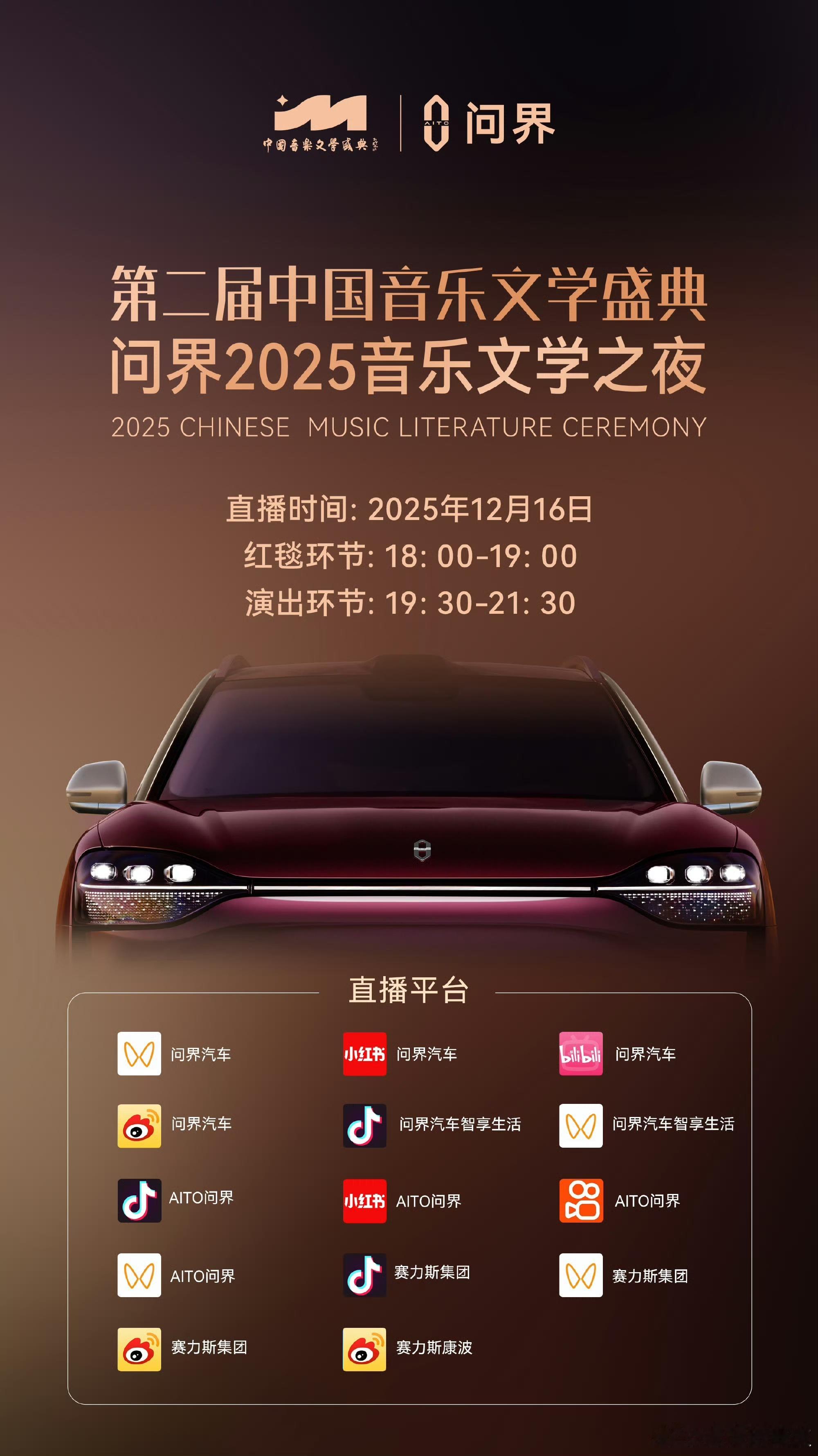 问界携手中国音乐文学盛典 今晚重庆19:30!千万不要错过了哦~工业美学遇见舞台艺术! 问界携手盛典,打造视听双重盛宴。