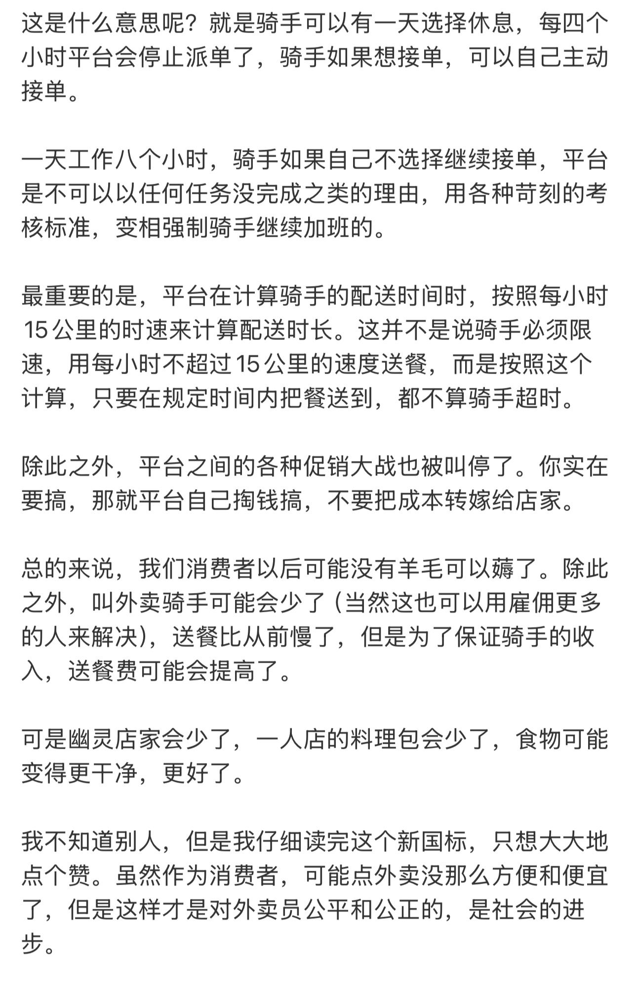 外卖新规执行以后,如果能改善品质,不压榨店家和外卖小哥,哪怕薅不到羊毛我觉得也是能接受的