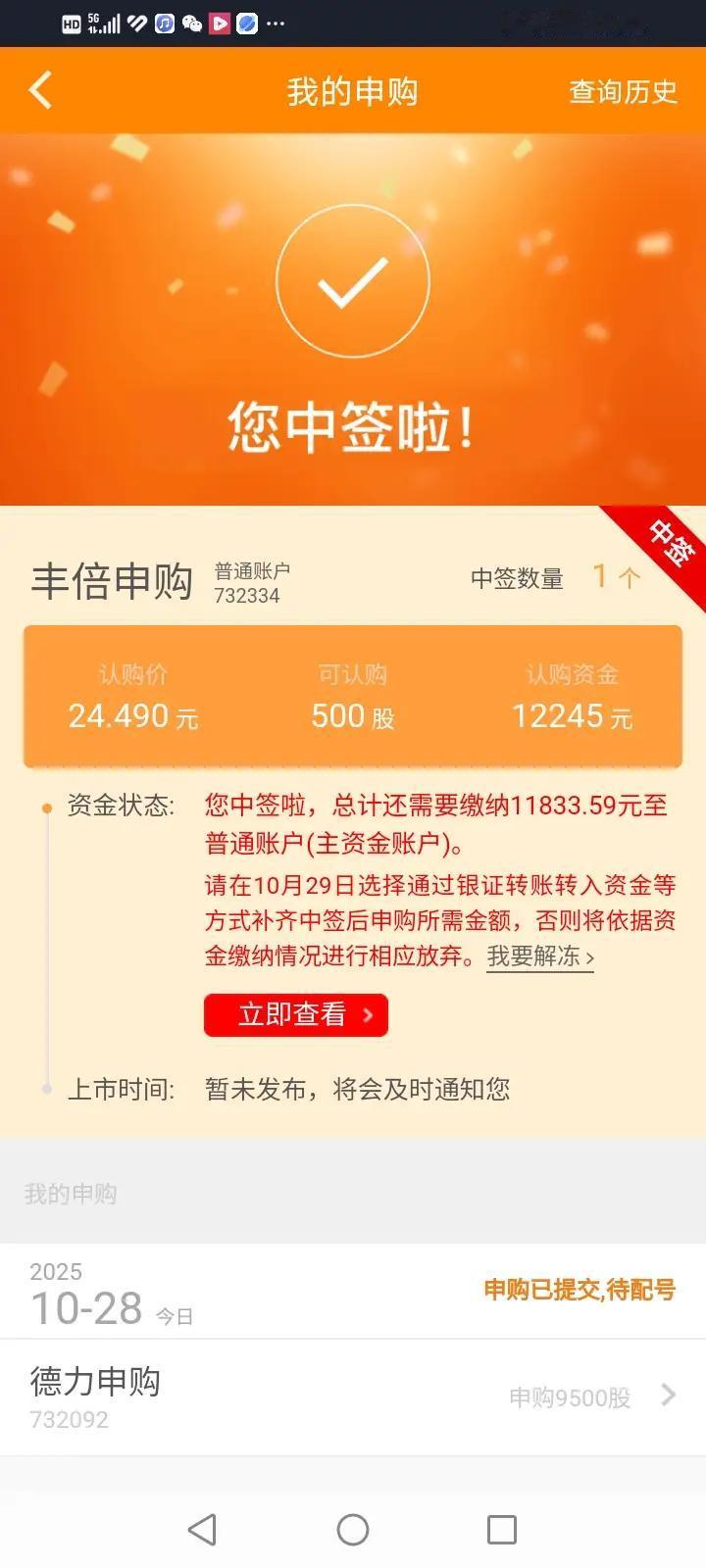 乍一看,还挺喜庆!您中签了!细一看,原来是中了一只可转债,只够买点菜。 今年中签太难了!股票好像今年就中过一次签。 虽然中签可转债赚不了什么钱,但能中签就是好彩头,说不定下一次中签的就是股票大肉签呢! 心态好就会运气好!一切都会好起来的!