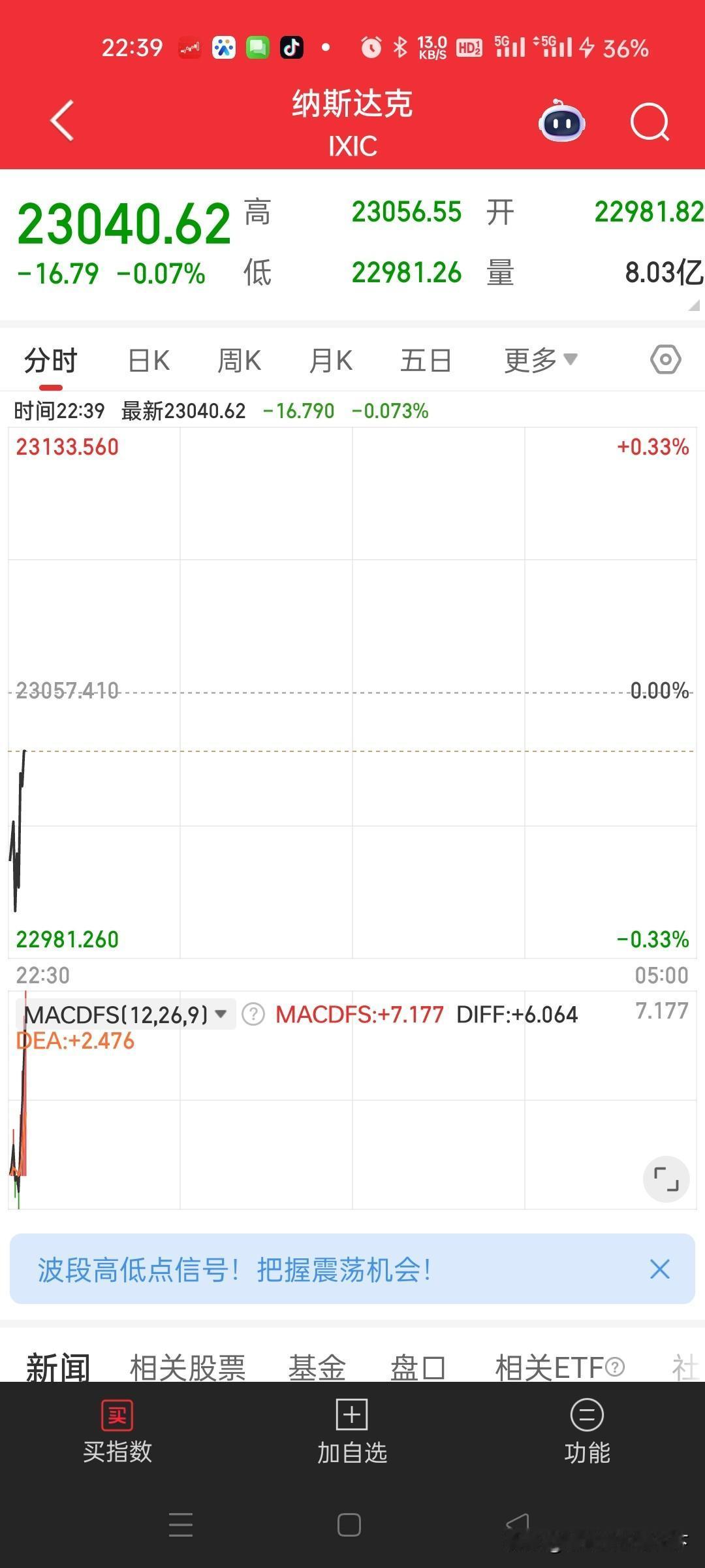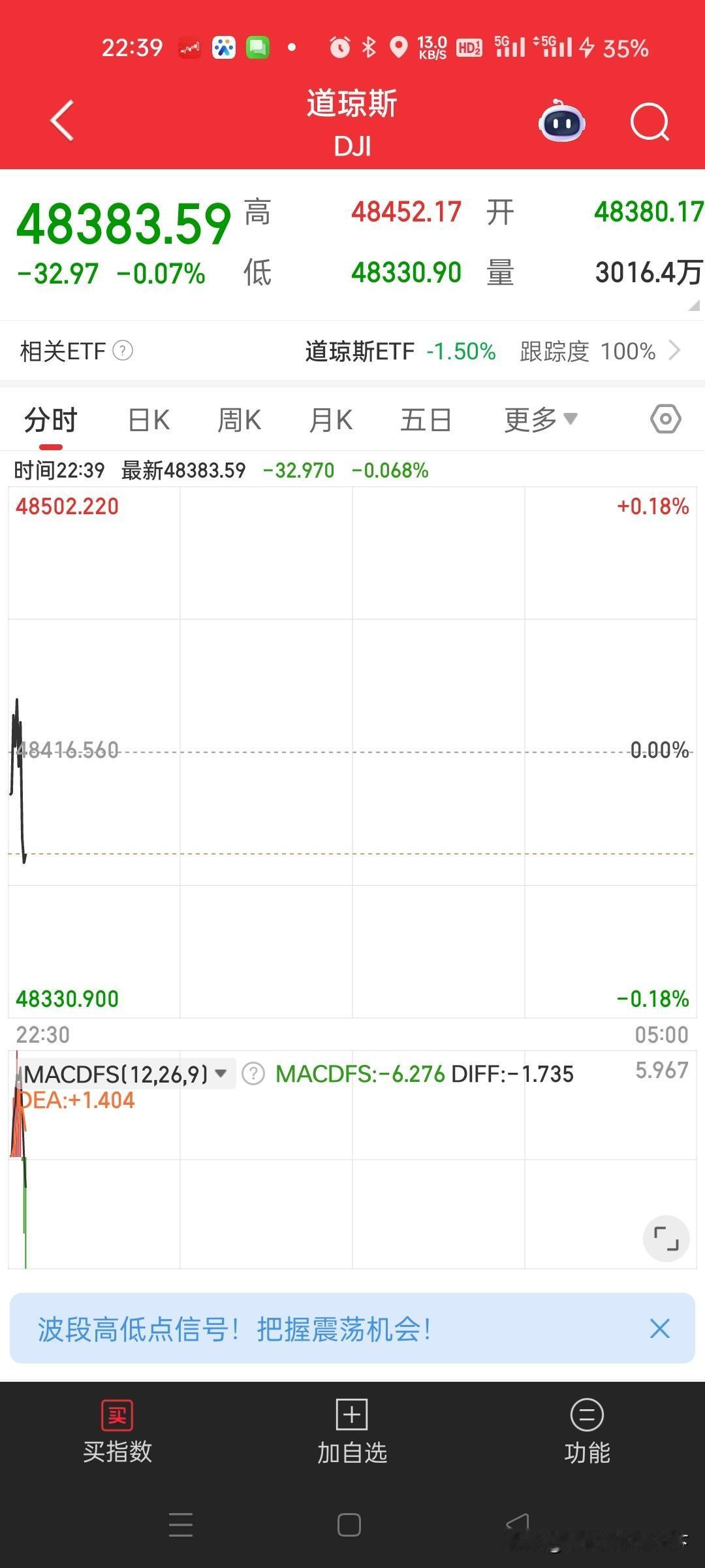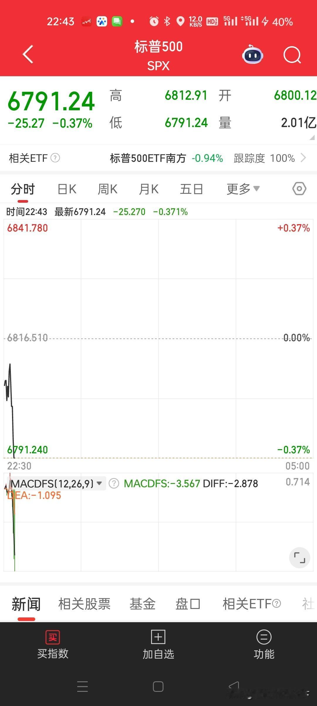 午夜看盘美股开盘挠痒痒,然后跳水美股三大指数集体低开,道琼斯指数跌0.04%,标普500指数跌0.18%,纳斯达克综合指数跌0.23%。,道琼斯这是个什么鬼,0.04%,标普0.18%,纳斯达克0.23%,我看了一会,标普纳斯达克低开高走了啊,转眼又开始跳水,如图,真是不爽啊,美股走不好A股明天又难受,期盼美股今夜走好,明日A古再发癫。国际原油暴跌,国际黄金强势,逼近前期新高。如图