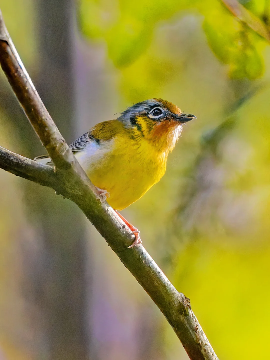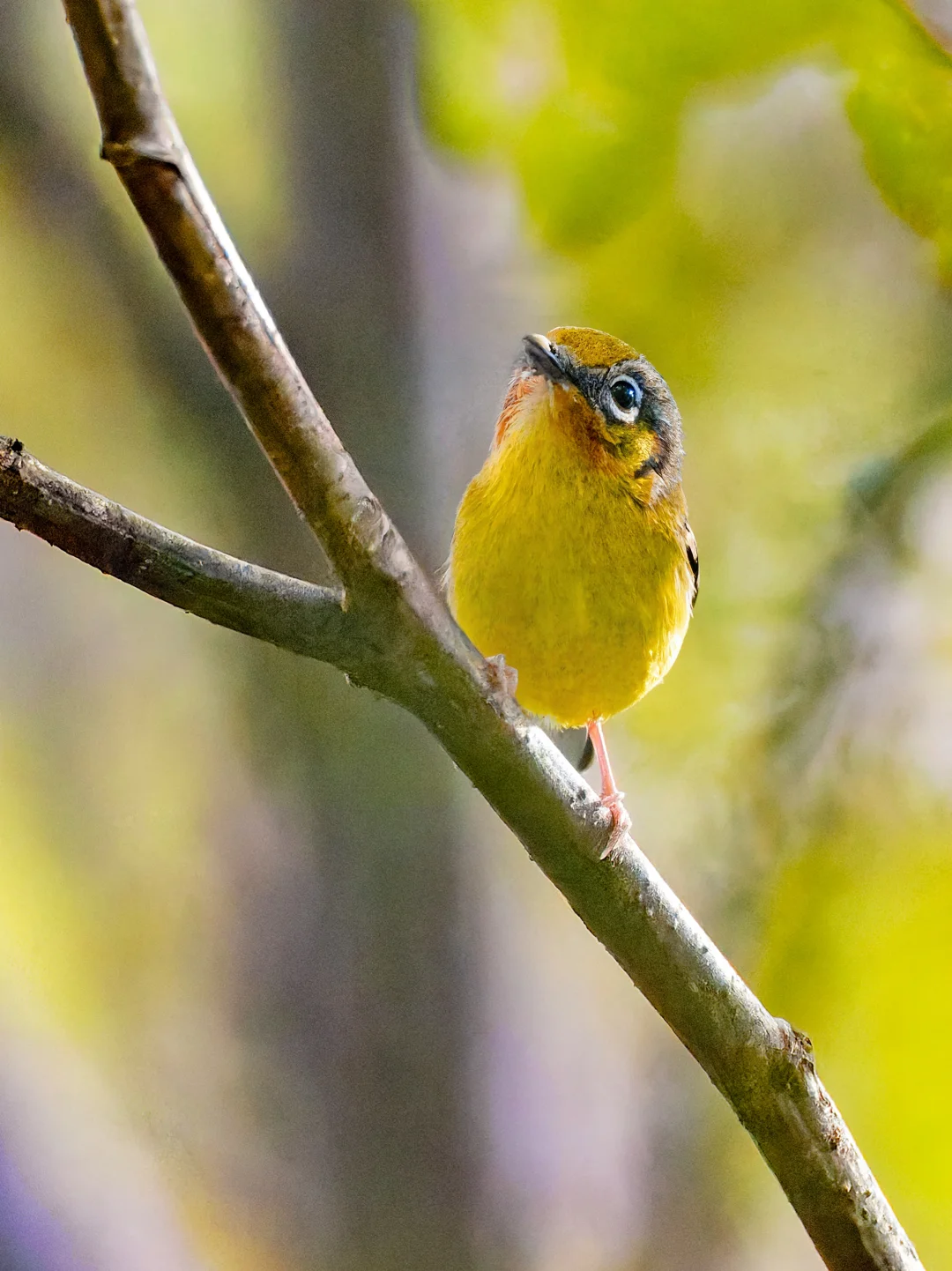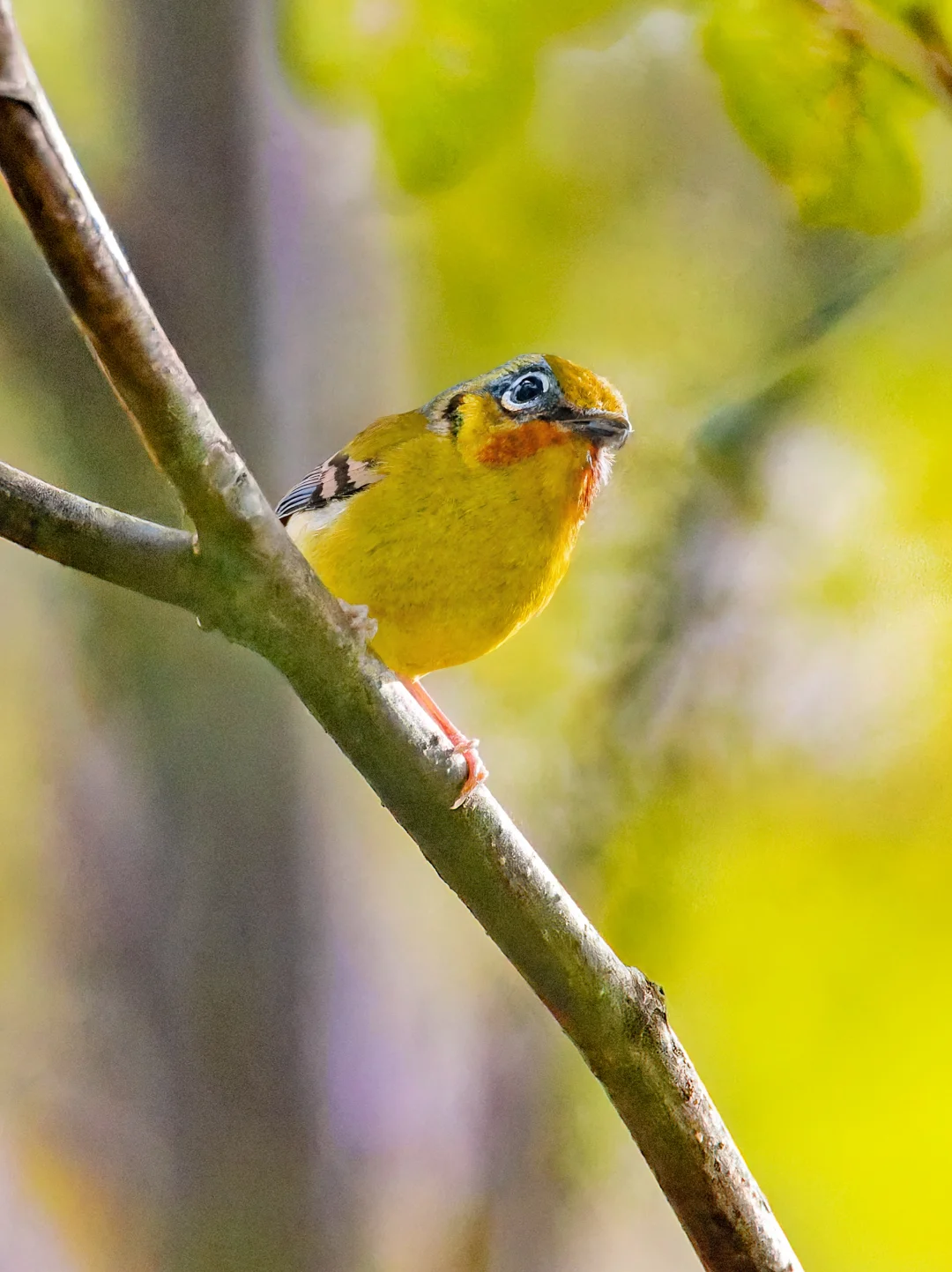 原创拍摄 栗喉鵙鹛 ,Black-eared Shrike-babbler,雀形目莺雀科鵙鹛属。分布在喜马拉雅山脉至东南亚。 栗喉鵙鹛非常卡通,有一对大圆眼,胖胖的,有鲜艳的黄色腹部,栗色的喉咙,当然雄鸟的喉部比雌鸟更明显。 这次在墨脱格林村看到的这只栗喉鵙鹛混在鸟浪中,尽管光线偏暗,简直一眼把我萌到,鵙鹛都是这样可爱。