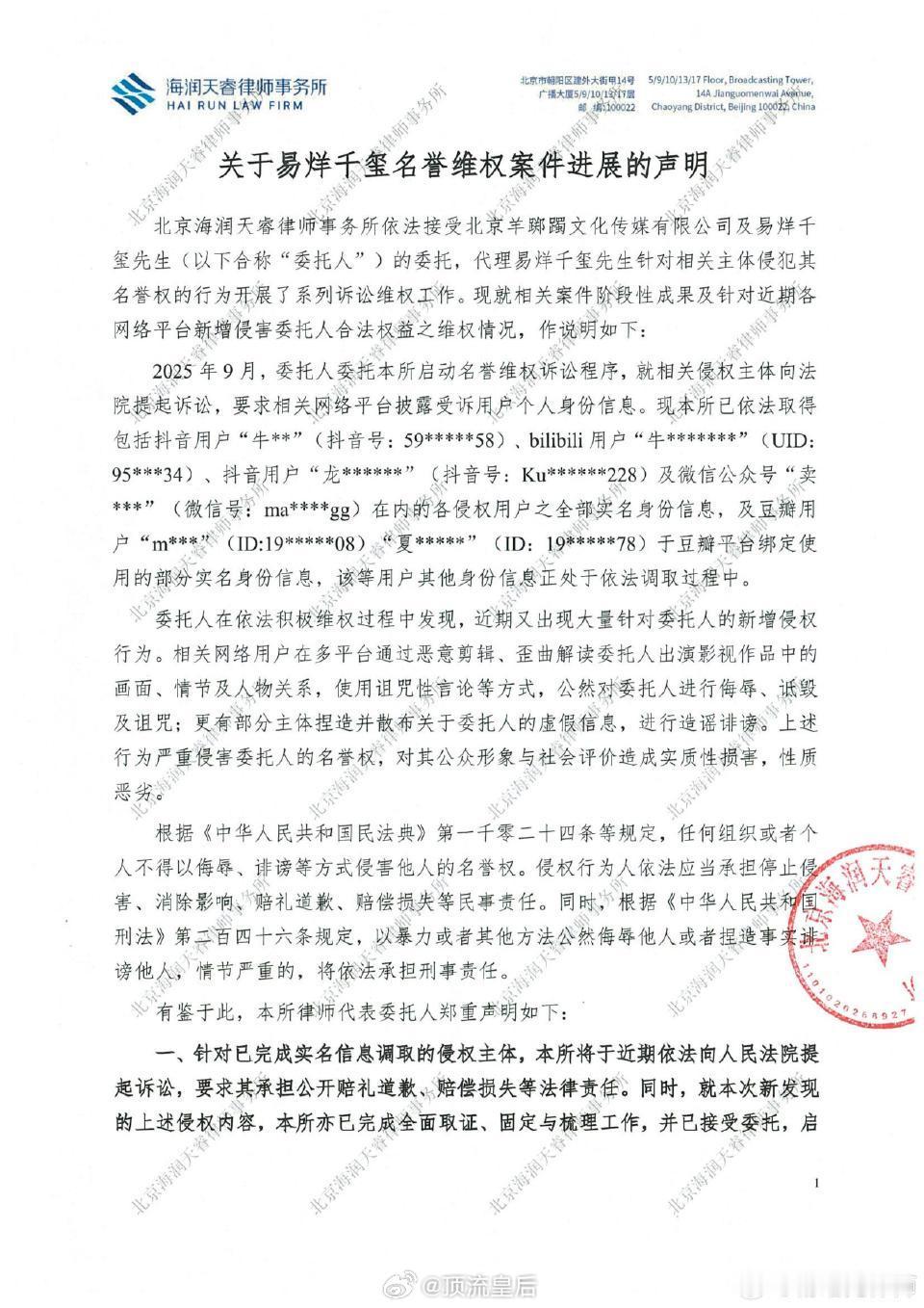 恭喜易烊千玺维权取得新进展,互联网不是法外之地,支持合理维权。