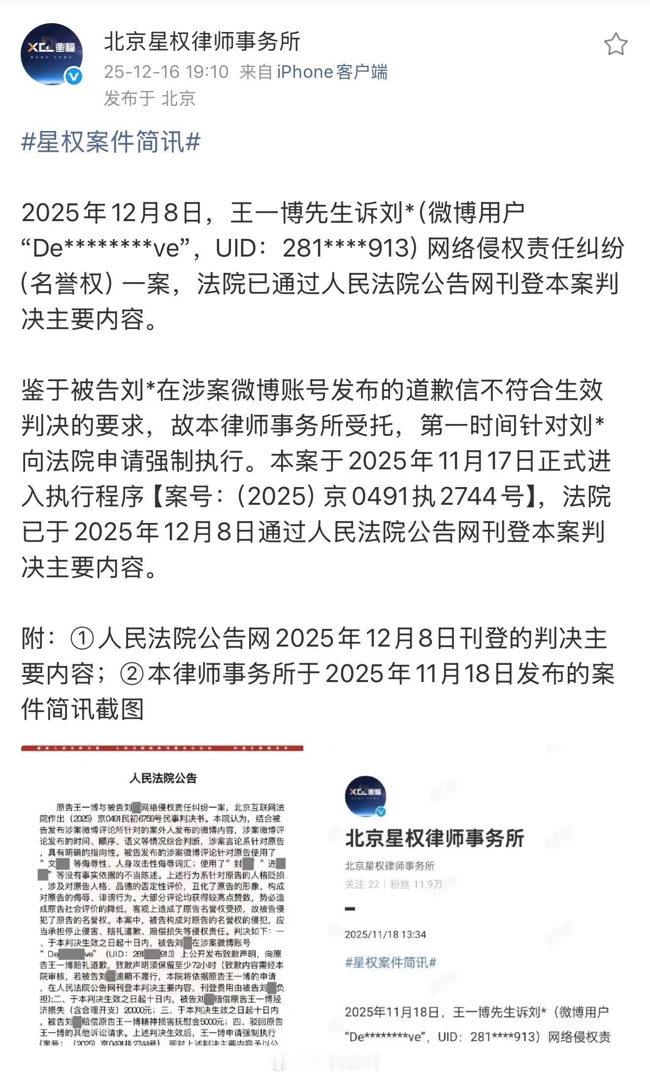 一审败诉不服,二审维持原判。履行道歉义务不符合要求,被申请强制执行了。王一博维权