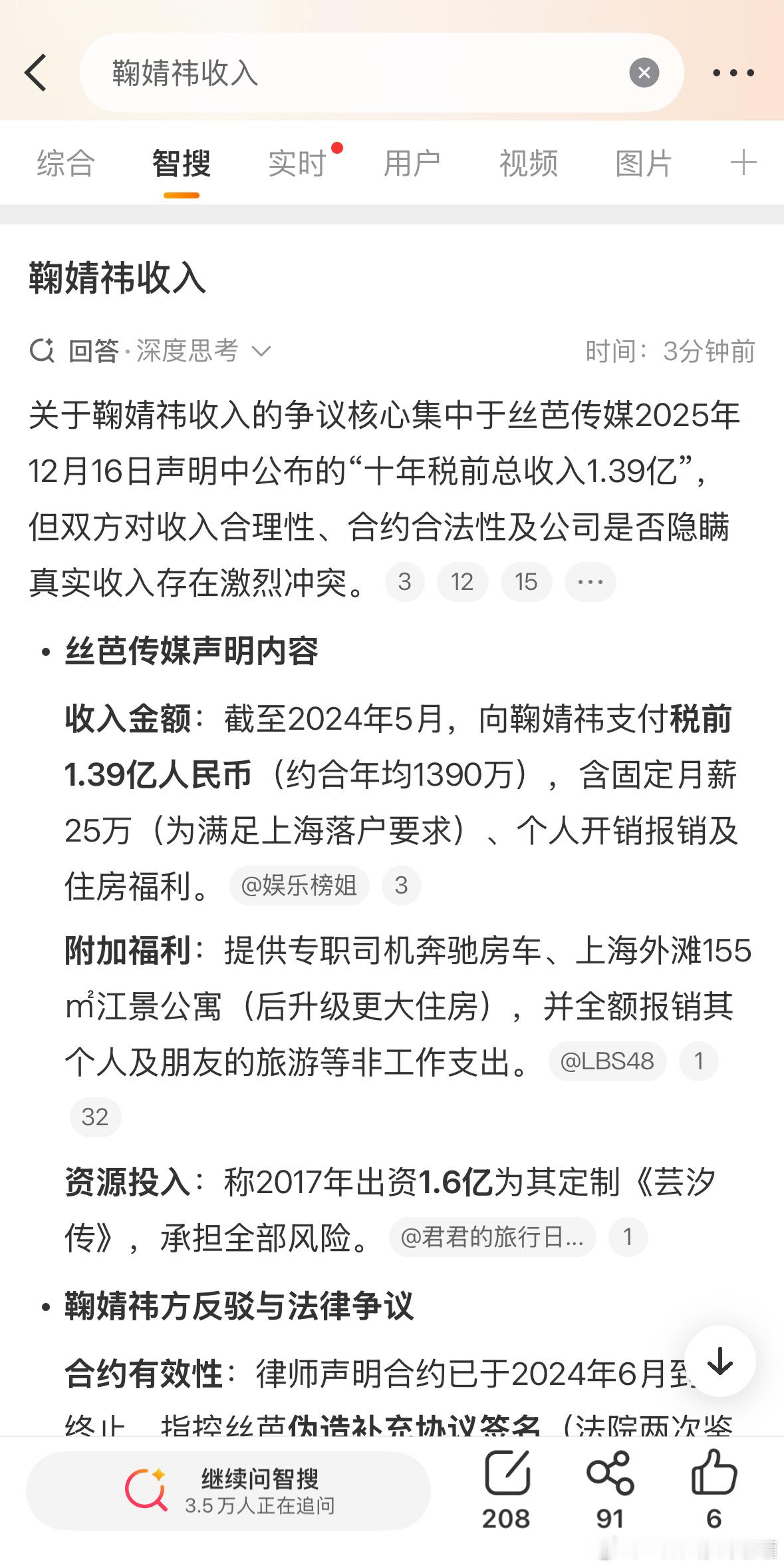 鞠婧祎收入鞠婧祎年收入此事反映经纪公司与艺人间常见的分成纠纷,也暴露部分公司通过福利置换分成税务操作等灰色手段。