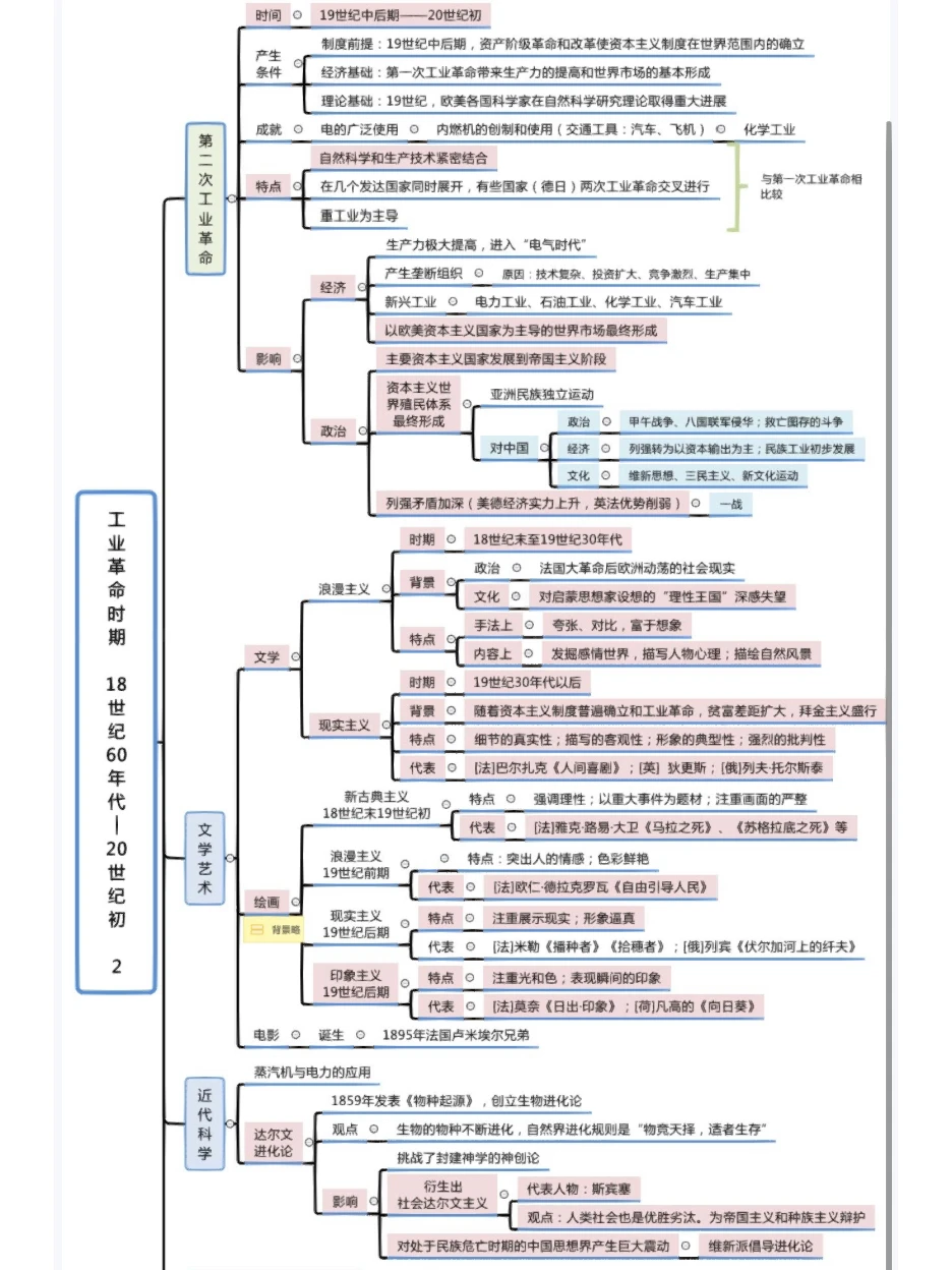 在交通领域:第一次工业革命出现火车、轮船,第二次工业革命出现了汽车和飞机 在社会结构:第一次工业革命产生了两个对立阶级工业资产阶级和无产阶级,第二次工业革命产生了垄断组织。 在世界市场:第一次工业革命促使世界市场初步形成,第二次工业革命促使世界市场最终形成。 6、世界市场的形成过程 新航路开辟:世界市场的雏形开始出现;殖民扩张:世界市场拓展 第一次工业革命:世界市场初步形成;第二次工业革命:世界市场最终形成