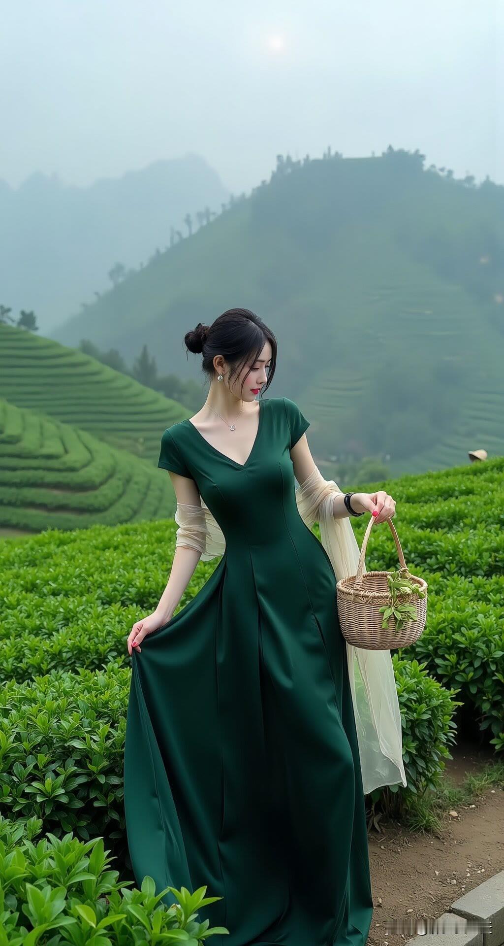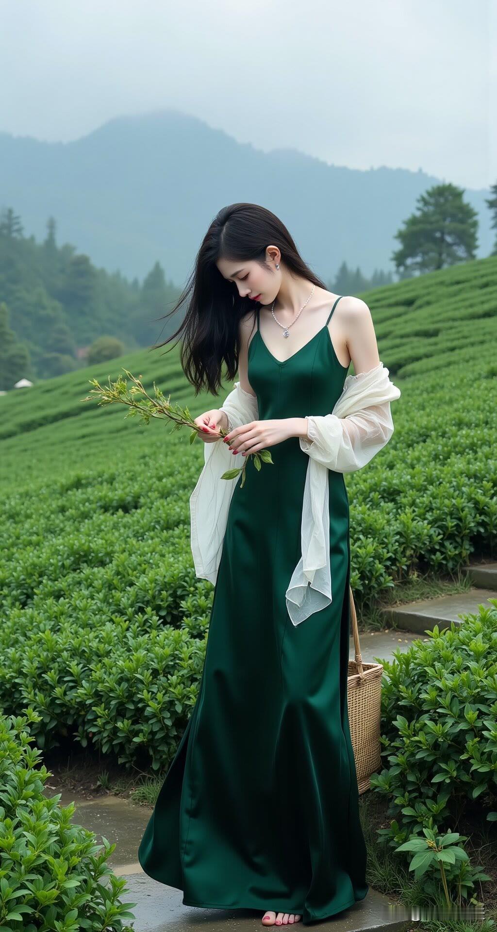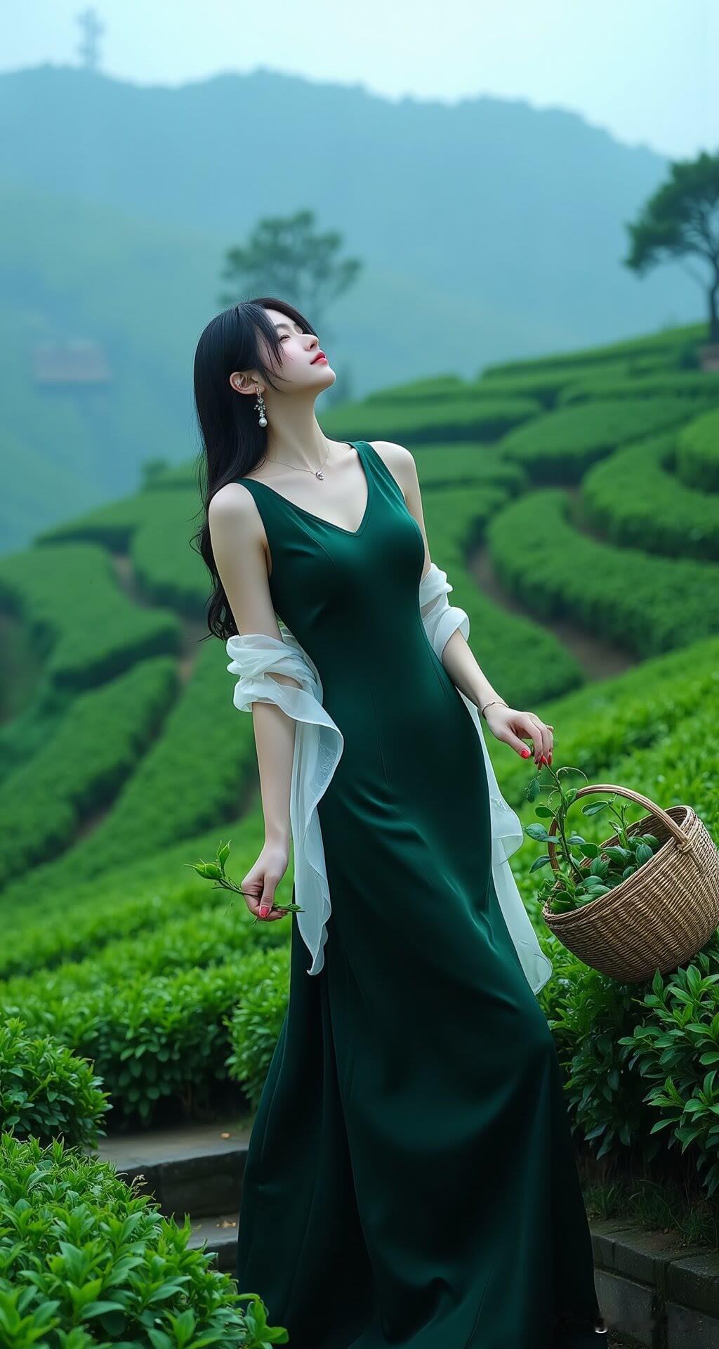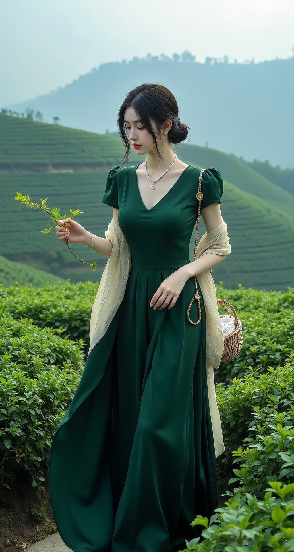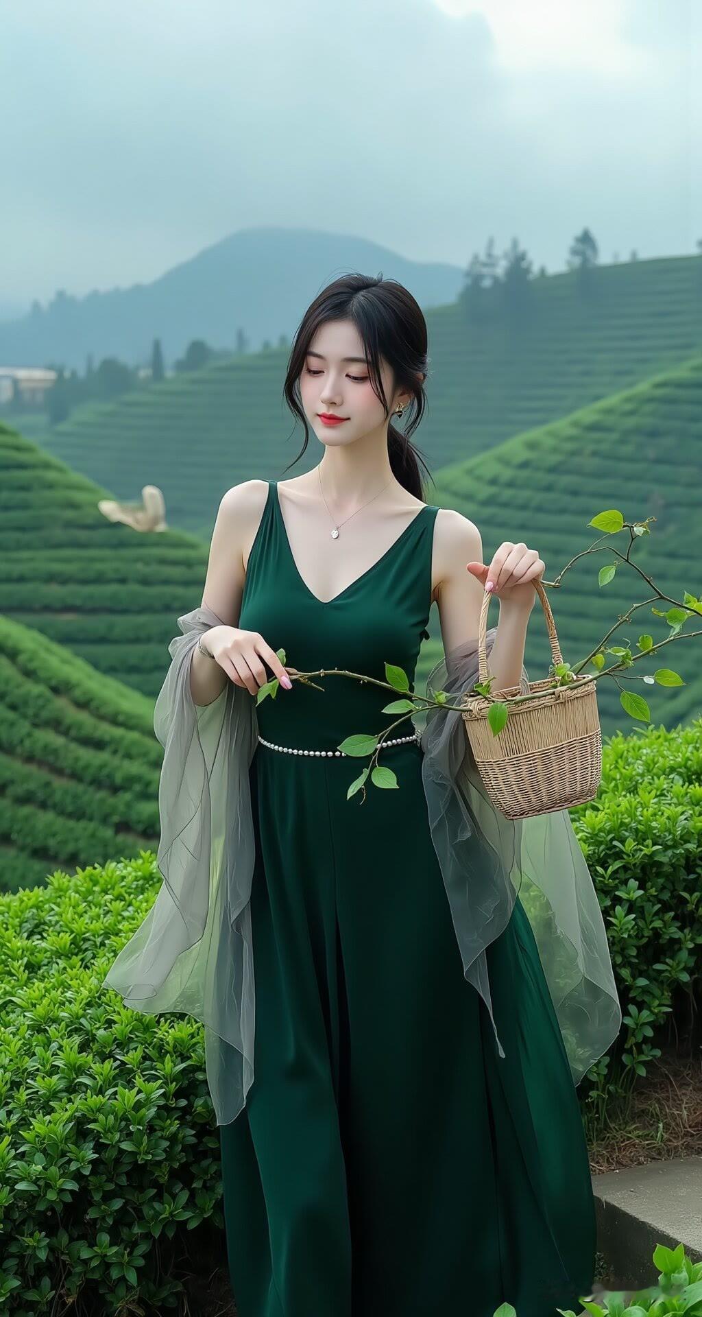 绿野寻芳:茶园佳人采撷时美女人像群