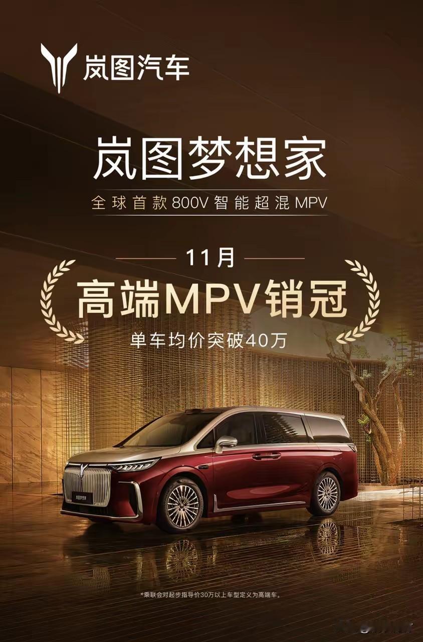 岚图梦想家11月份竟然卖了9000多台!40万以上高端MPV销量排行遥遥领先啊! 想到岚图梦想家销量领先,但没想到会领先这么多,竟然接近腾势D9的2倍了,再这样下去,领先的就让后面连尾灯也看不到了。 这种高端的车型应该利润率很高吧,岚图还不是离盈利也不远了,就看岚图这一颗棋活了,能不能带活东风整盘棋!