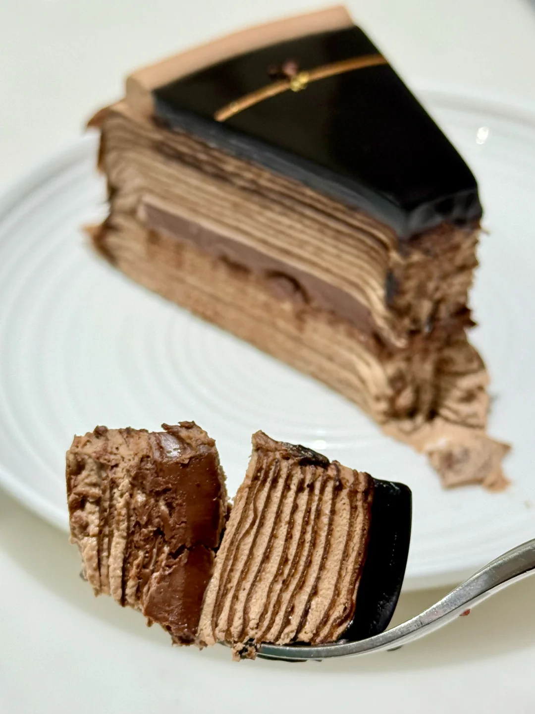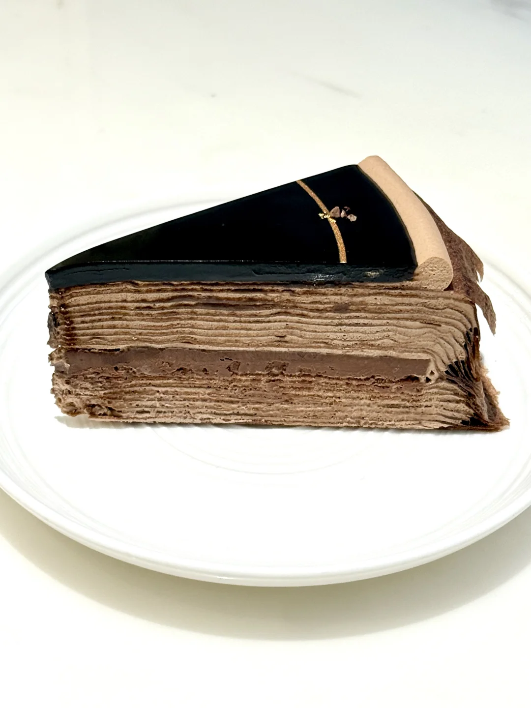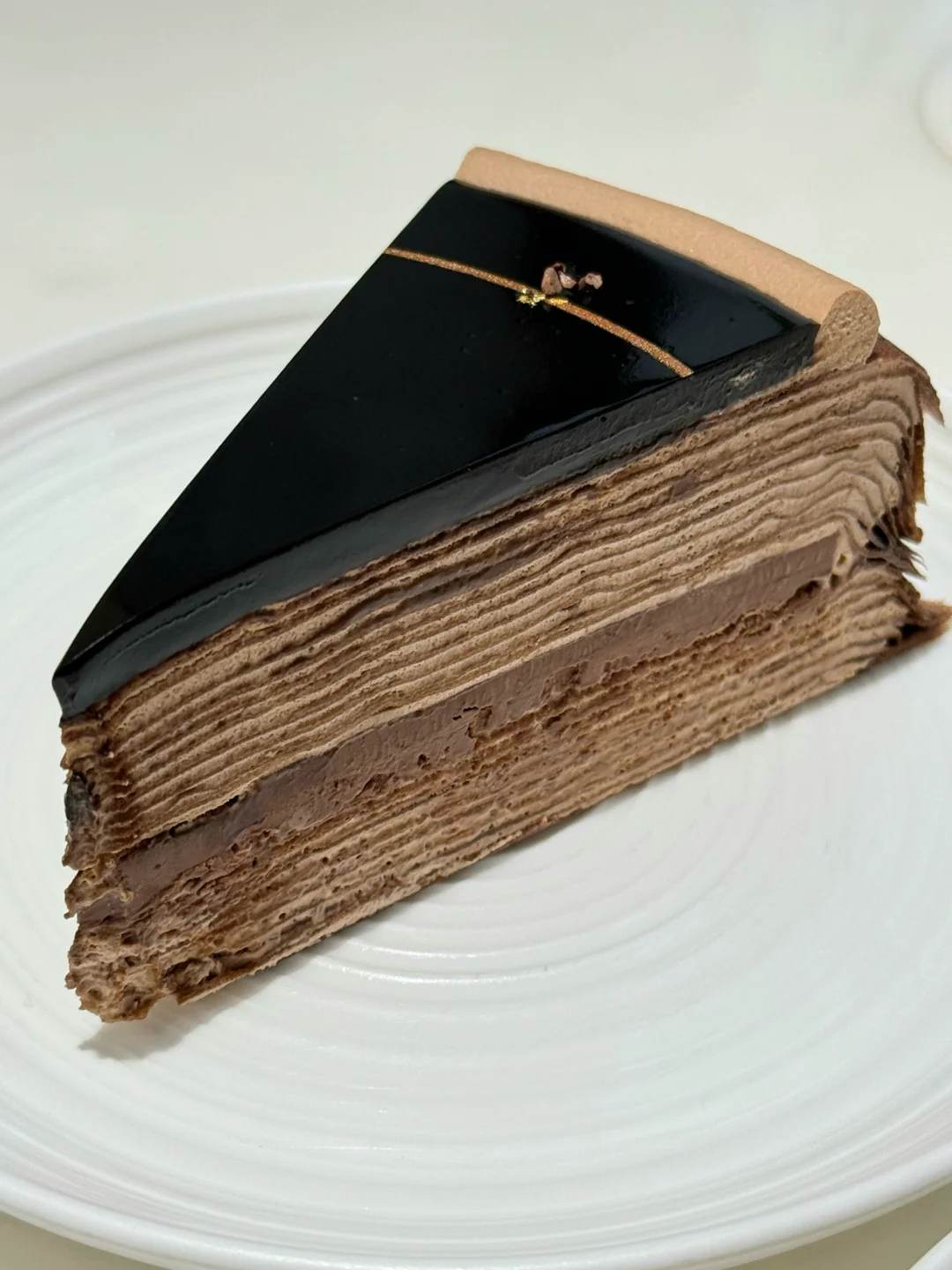 🍫软心黑朱古力千层蛋糕:只有在港澳才能吃到!和法国奢华朱古力La Maison Du Chocolat联名,去到店里只剩下最后一块了必须拿下😋软心黑朱古力入口即化,手工班戟薄皮里还有可可豆的碎片,口感丰富,巧克力控必冲!