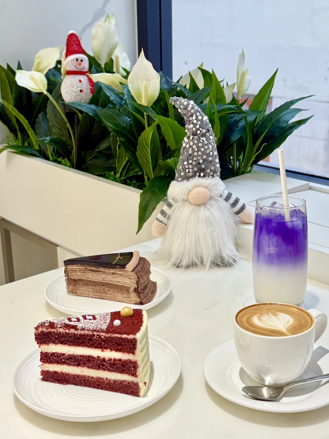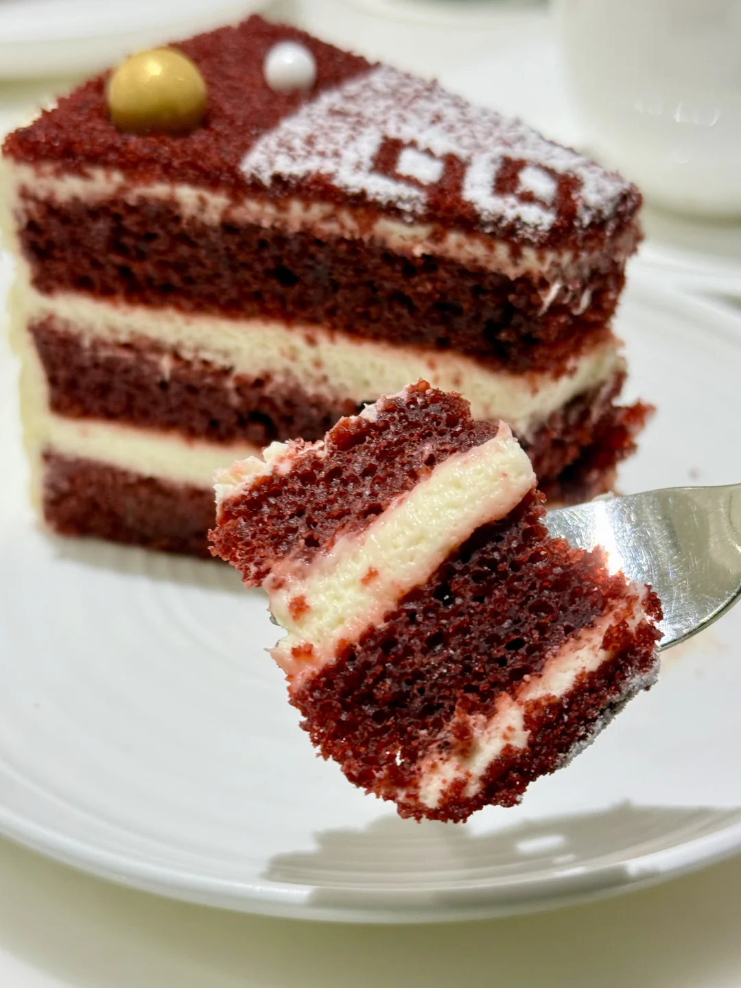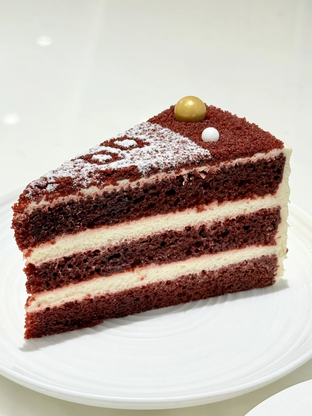 🍰红丝绒蛋糕:特别适合圣诞和新年!雪花糖霜铺在酒红色的海绵蛋糕上,口感绵密,加上满满的忌廉芝士,让人每一口都觉得甜蜜幸福!