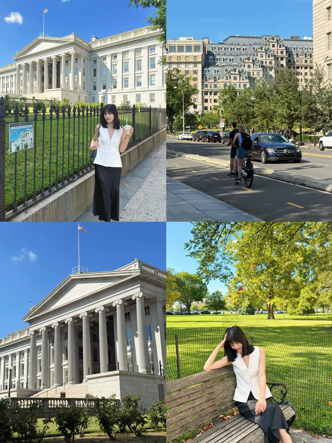 4️⃣白宫:美国总统的家,需要提前三个月预约才能预约到参观名额,我在栏杆外和白色小楼浅浅拍照打个卡。