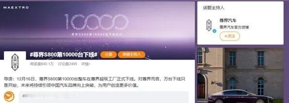 尊界S800破万 12月16日,尊界S800第10000台整车将在尊界超级工厂正式下线,迎来重要里程碑。万台整车下线,标志着中国自主汽车品牌正在改写长期由外资主导的超豪华市场格局。