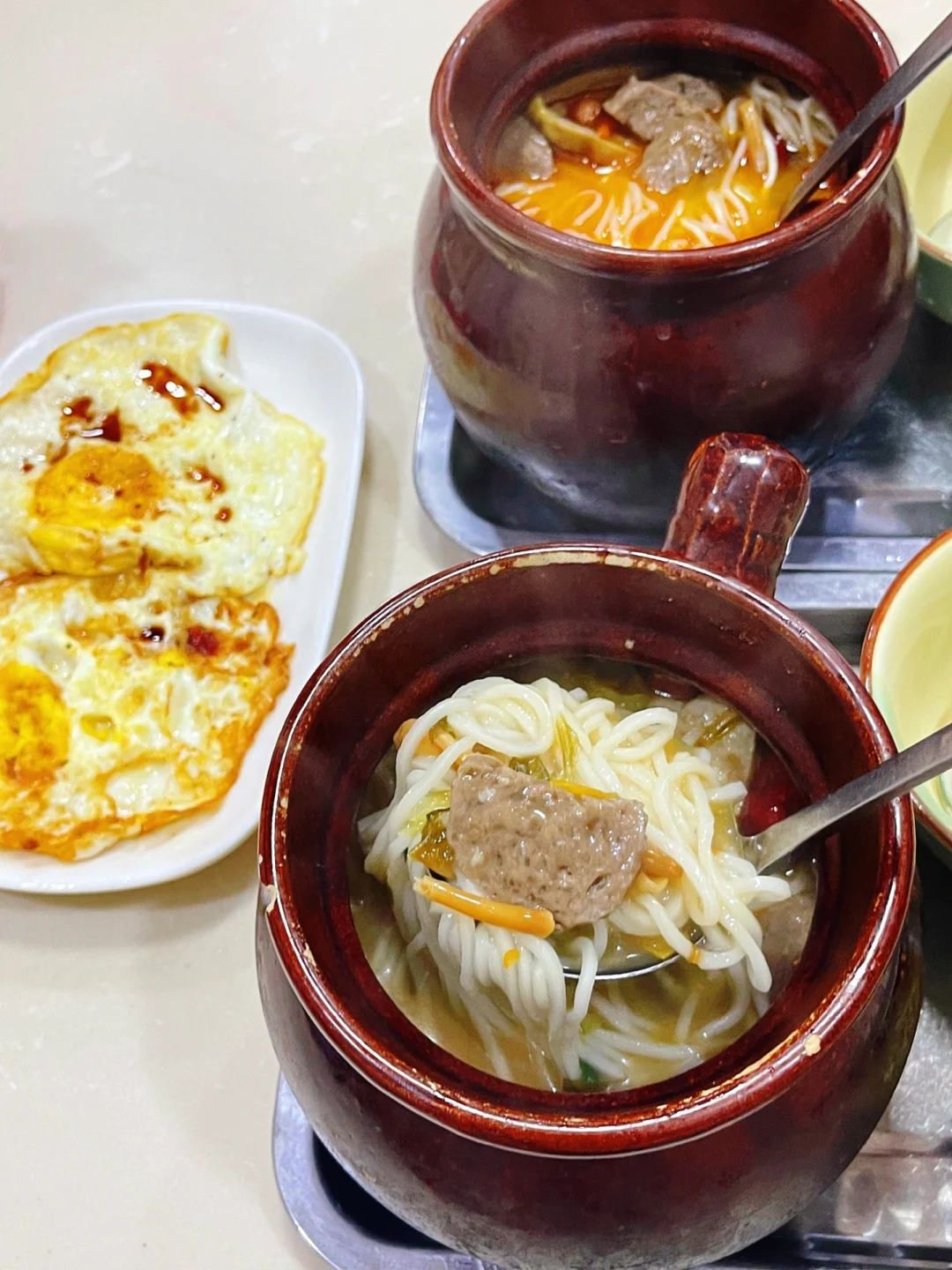😎牛丸罐罐面端上桌面的时候,就是冒着热腾腾的气,拌上一勺的辣椒,倒入花生米粒和酸菜搅拌一通,汤底酸辣可口,每一口都很鲜,面是细面很好嗦🔔给自己再➕一个家常的荷包蛋,整个就是一大满足!咱们就是说这家罐罐面就是我不回家吃饭的诱惑~