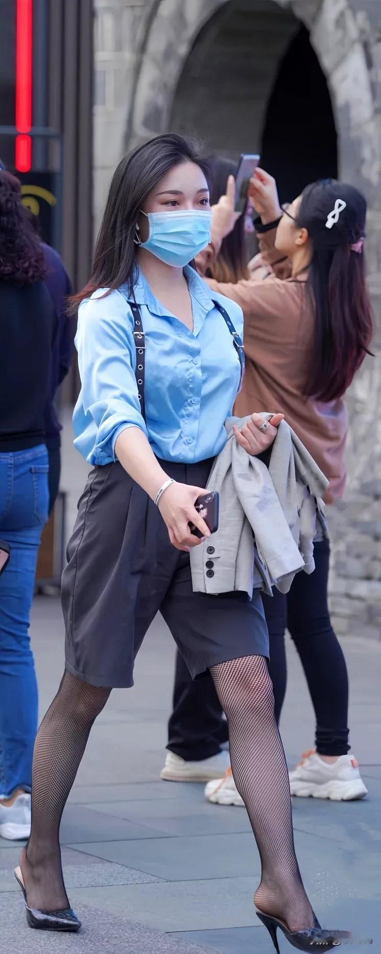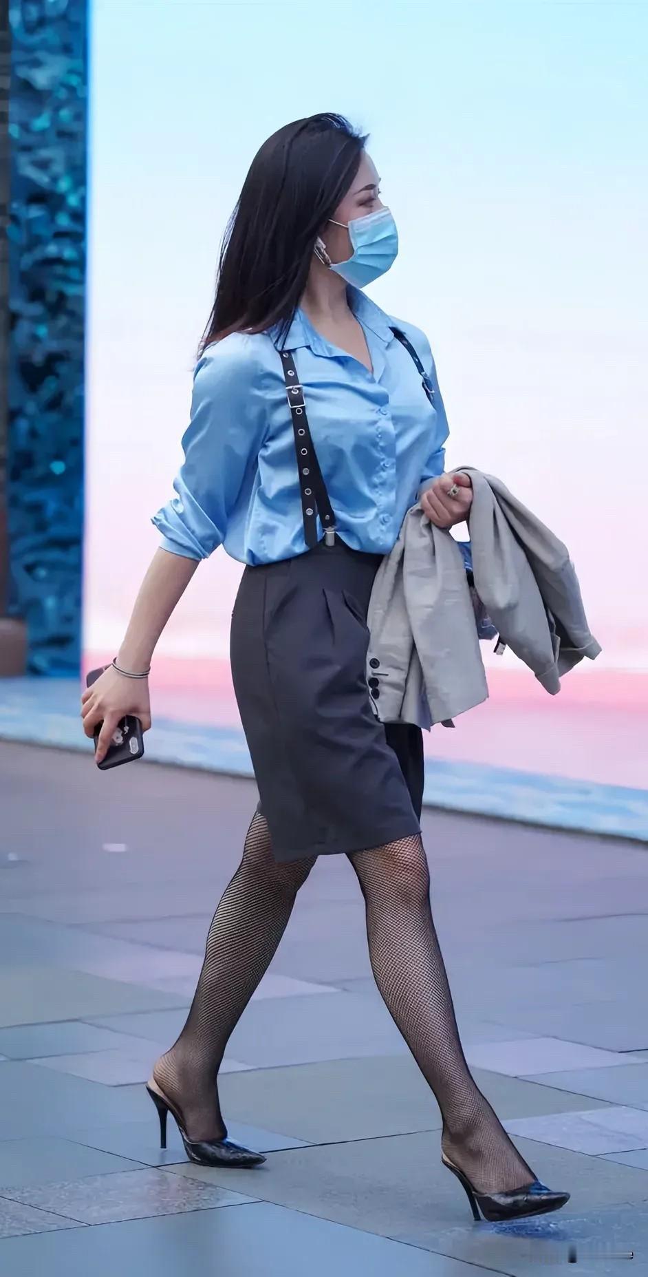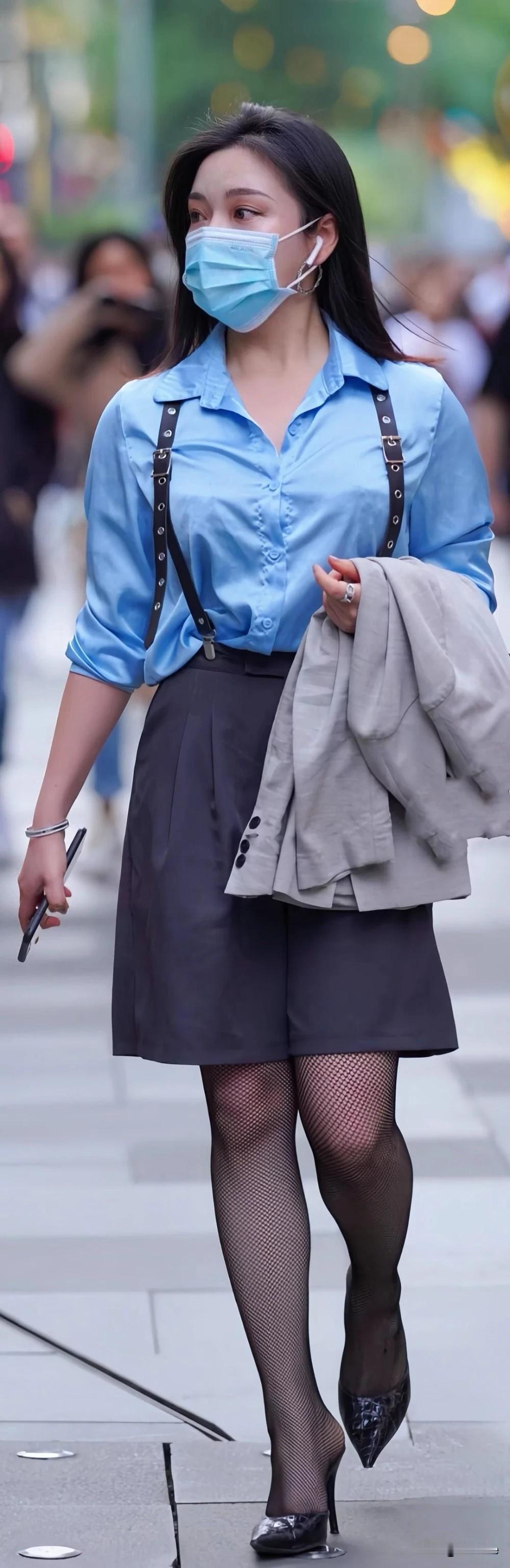 都市时尚穿搭指南,蓝色衬衫+黑色短裙,优雅又自信!
