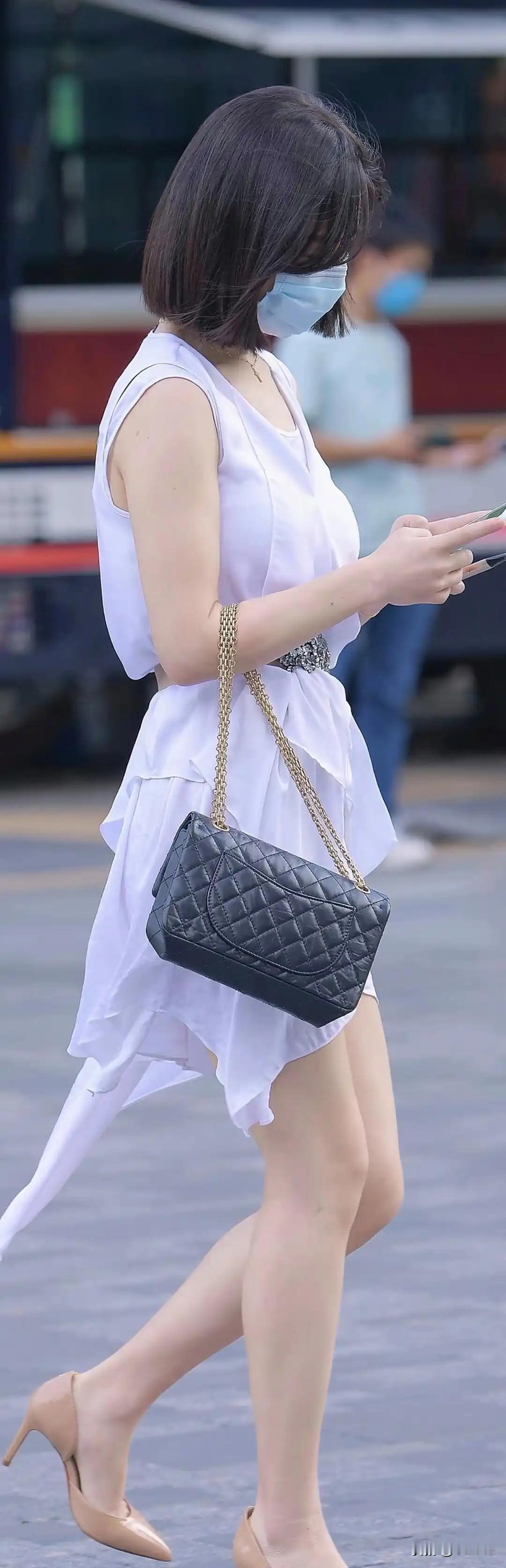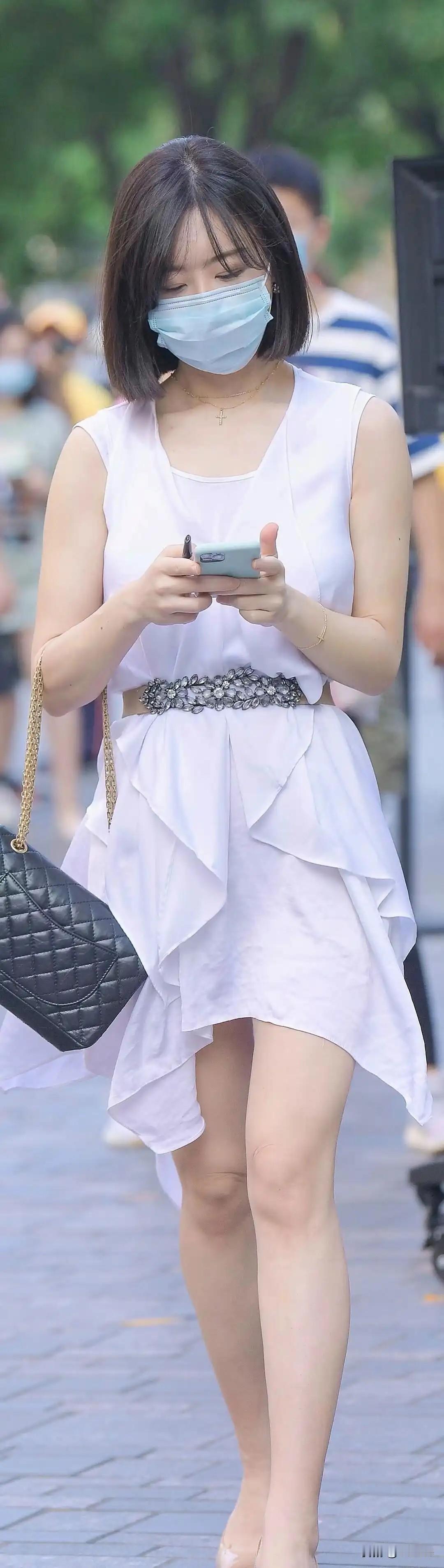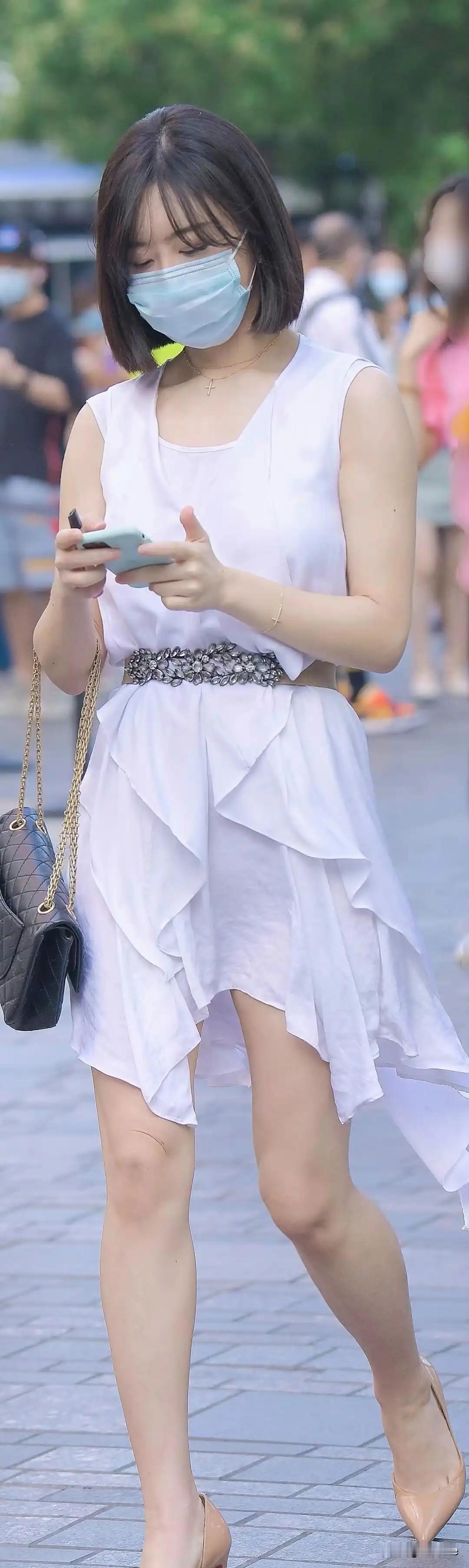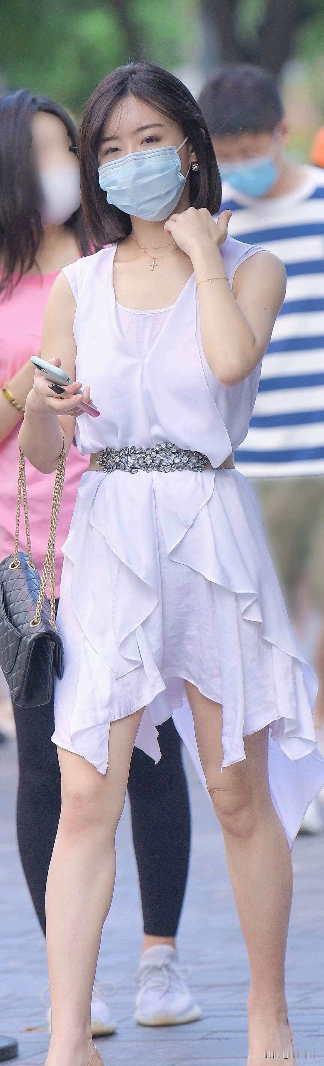 白色连衣裙搭配口罩,清新又时尚!🌞👗😊