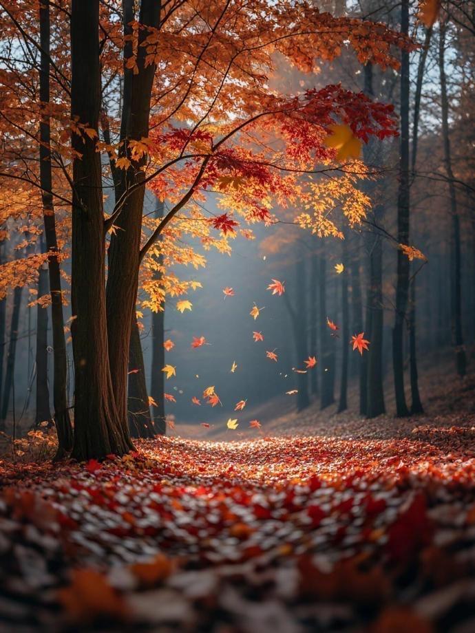 深秋初冬时节,随着气温逐渐转凉,树木的叶子也逐渐由绿转黄、由黄变红,纷纷飘落,铺