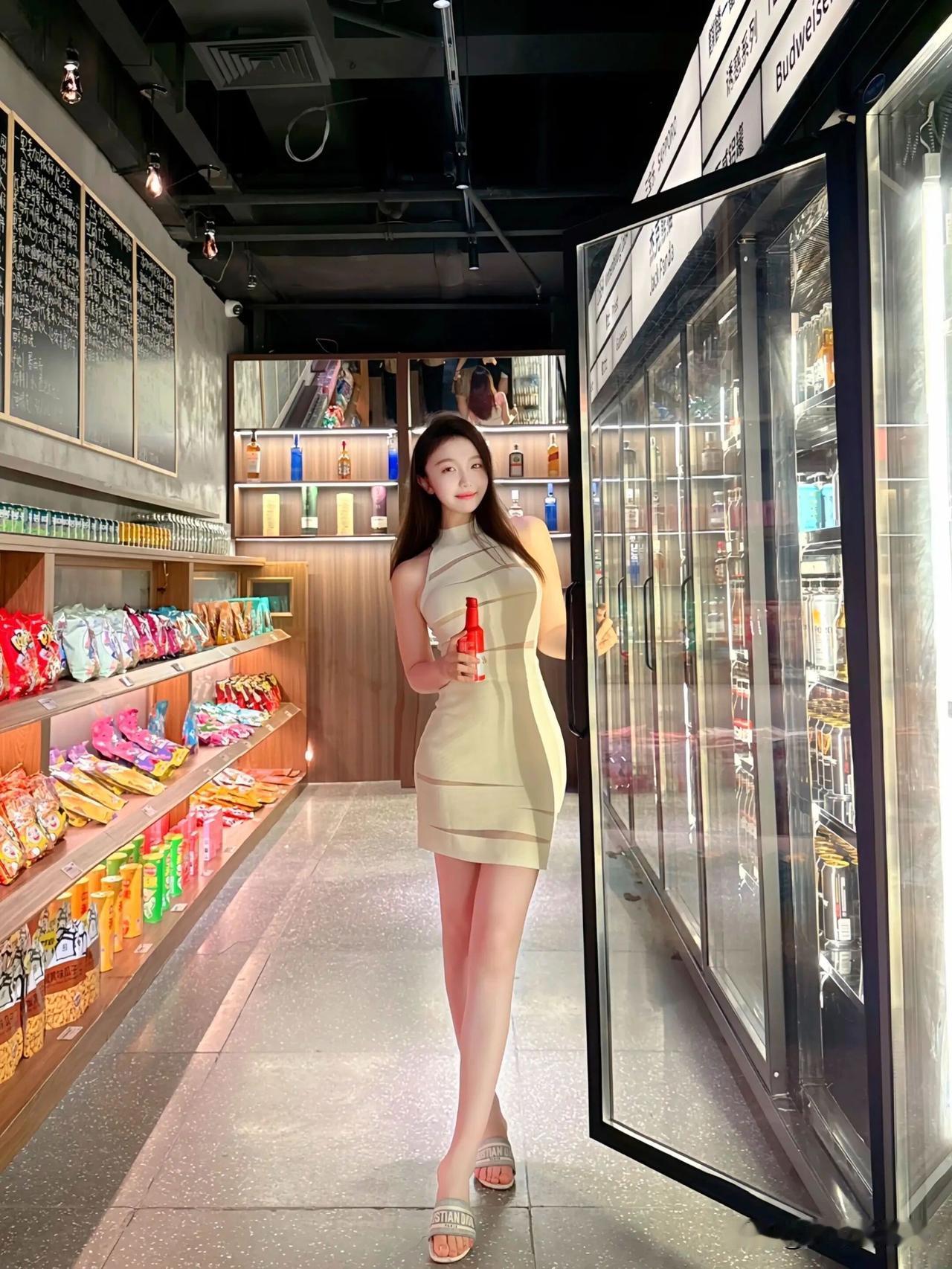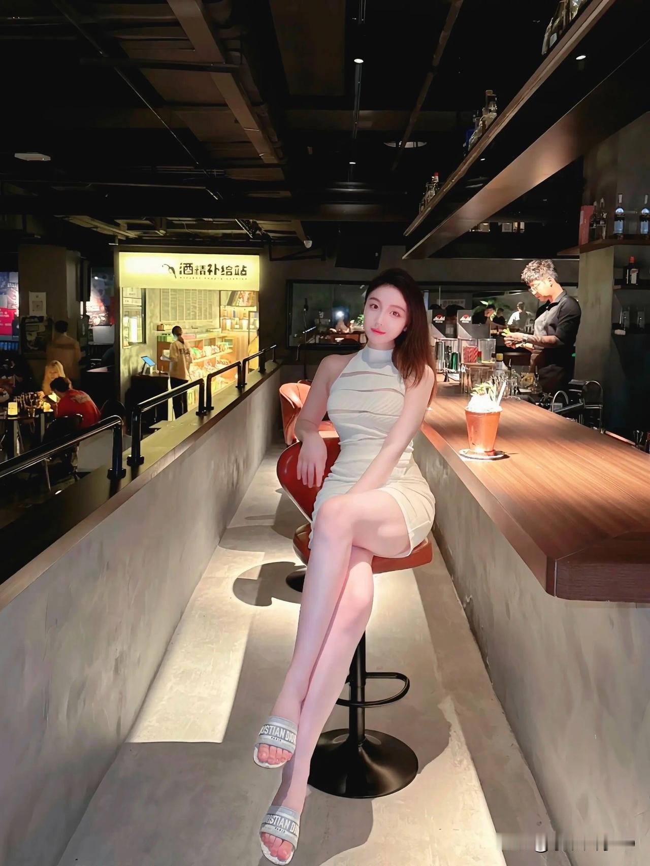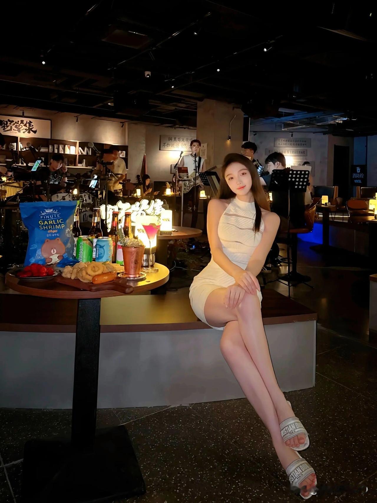 想象一下,一袭优雅白裙的佳人,静静地坐在现代艺术雕塑旁,那画面简直美得像一幅画。