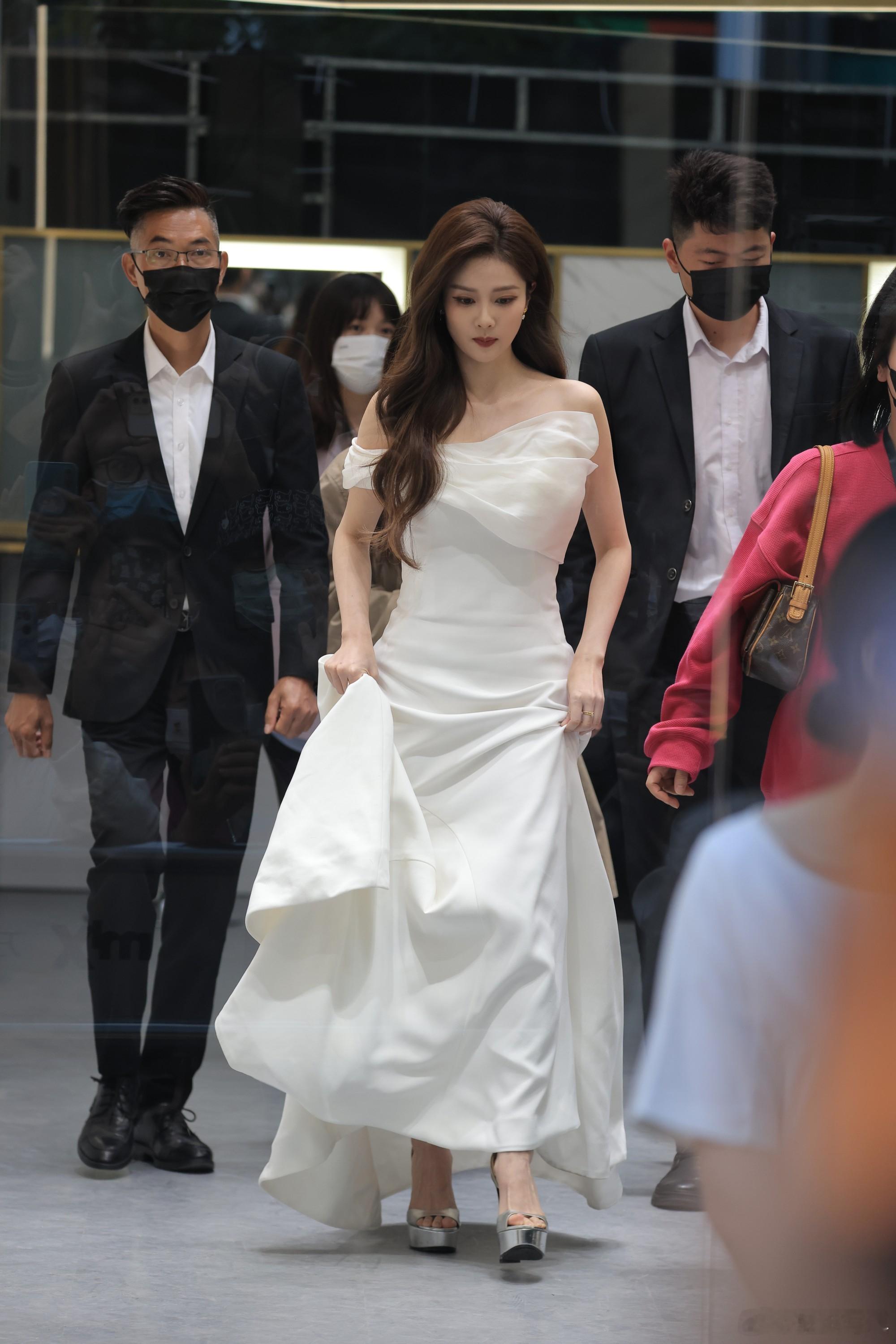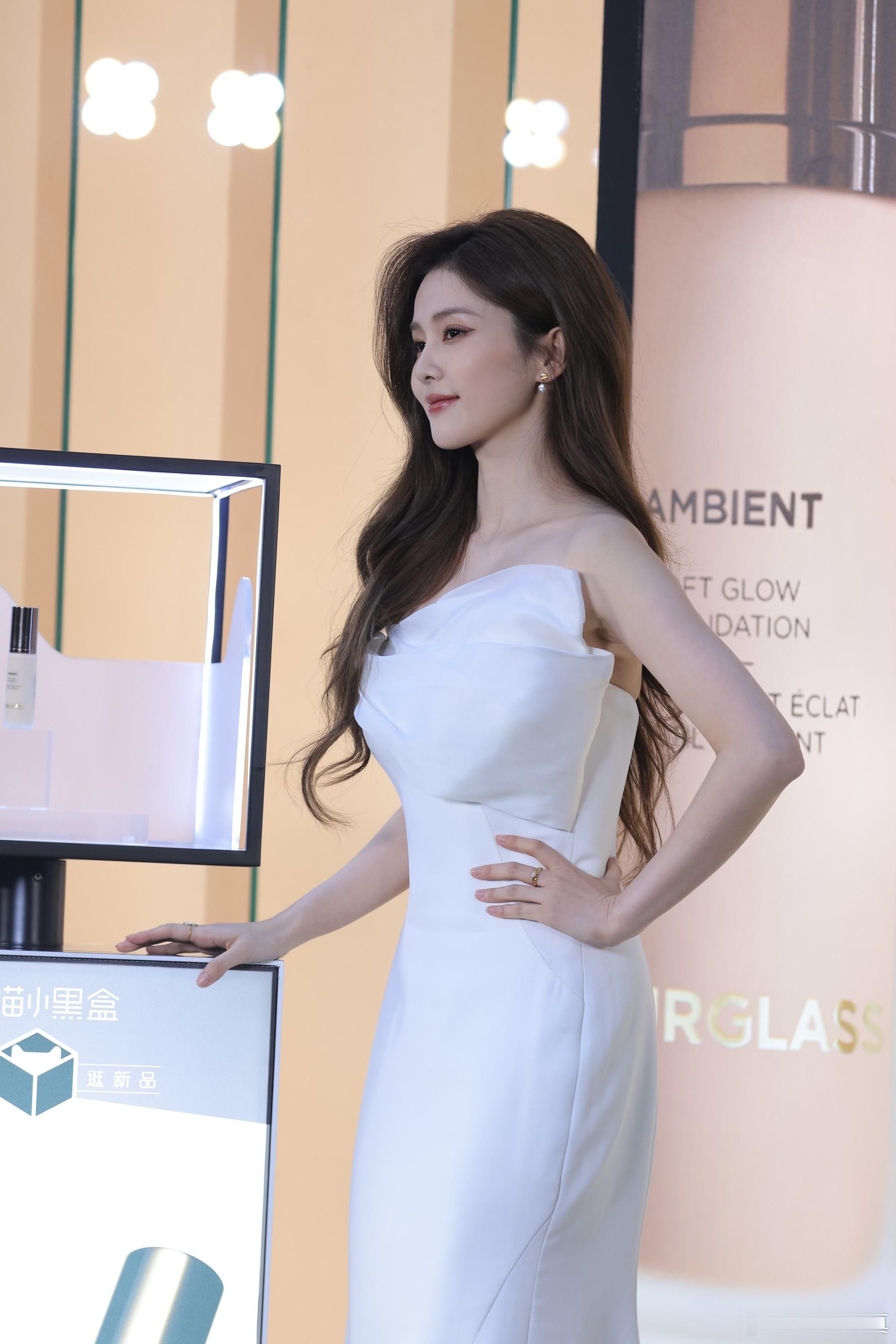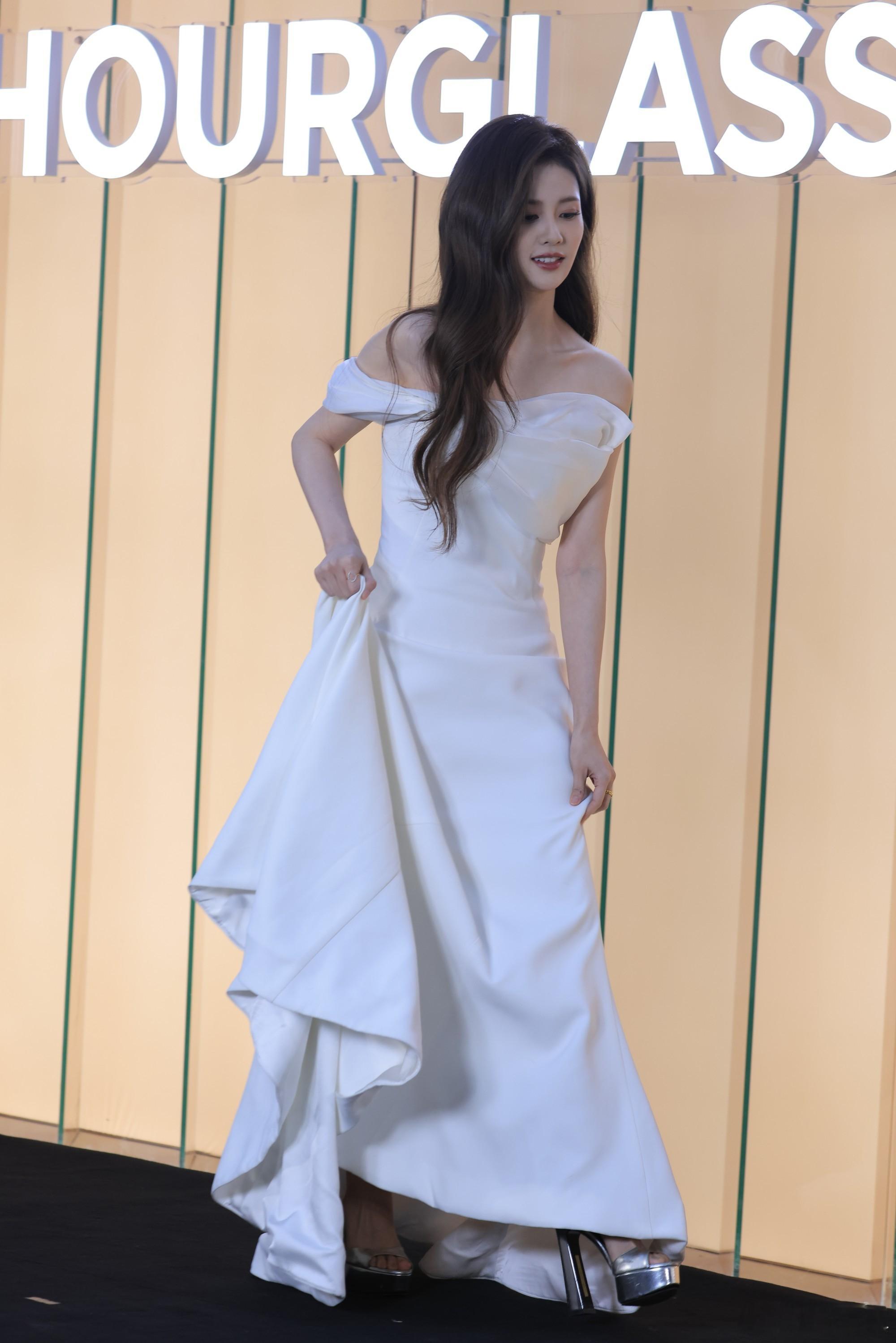 白鹿:白色露肩收腰晚礼服活动生图