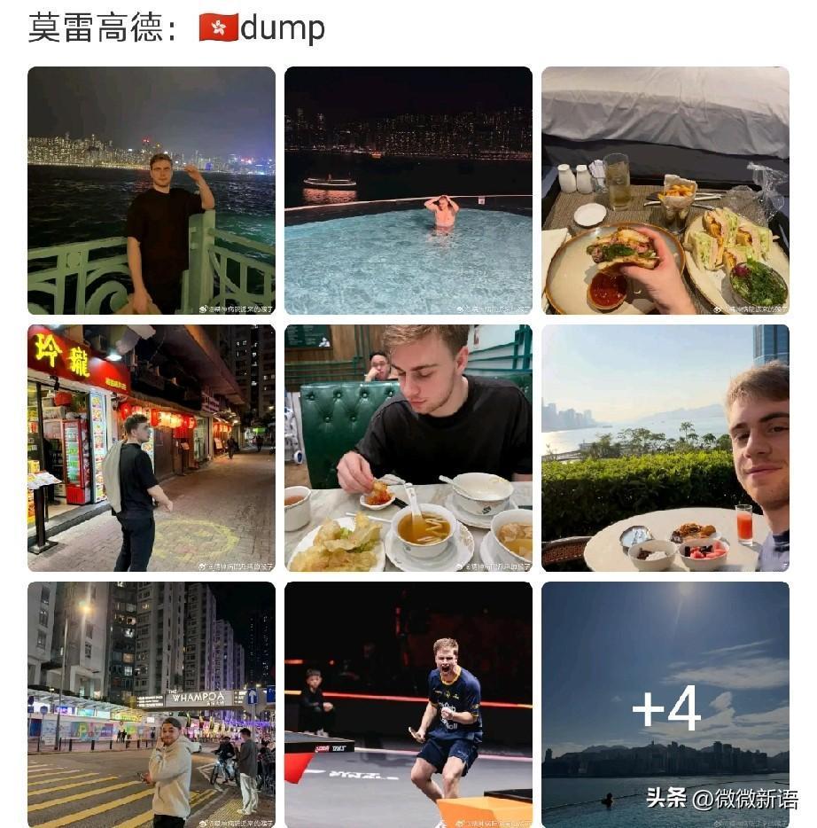 小莫在香港的生活很充实啊。 香港总决赛结束了,在半决赛中王楚钦因伤退赛,莫雷加德直接晋级决赛,不过我决赛中小莫是2-4输给了张本智和,拿到了总决赛的亚军。那天看他俩的比赛,虽然小莫没赢,但是确实打出很多的精彩球。 赛后小莫还发文说希望王楚钦能够早日康复,王楚钦退赛时小莫也拥抱了王楚钦。现在小莫也回瑞典了,整理一下在香港的生活,他只发了一张比赛的照片,剩下的就是生活日常。外协选手确实很会享受生活,小莫还在那里游泳了,他们住的地方很好,吃着早餐还可以欣赏外面的美景,看到小莫吃饭的时候旁边也放着筷子,他也学习用筷子吃饭了。 现在的比赛都是小莫的哥哥给他做场外,哥哥也会陪着他出去逛街,一起吃香港的美食。边打比赛边旅行,享受赛场之外的美好,小莫在采访中说自己接下来也会选择性的参加比赛,今年他也是退了一些比赛,在大赛中取得的成绩还是不错的。我们国乒主力也应该选择性的参加比赛,这次总决赛莎莎和楚钦都因伤退赛,看着他们受伤真的很心疼,接下来好好休息一段时间吧。