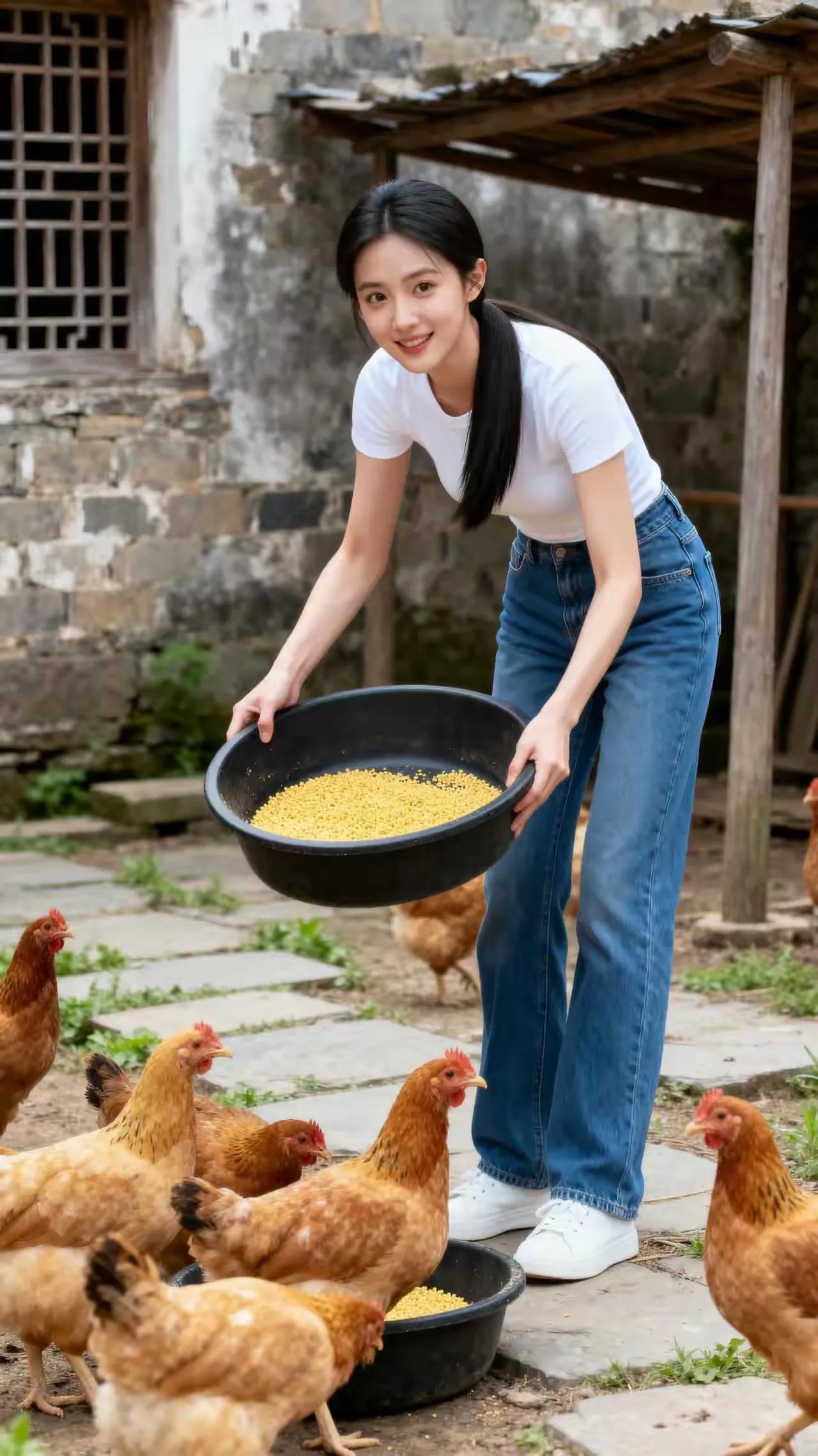刚从大城市嫁到农村的美少妇,第一次出来喂鸡🐔,没想到这些鸡像认识她一样,一下就围了上去,少妇高兴坏了。