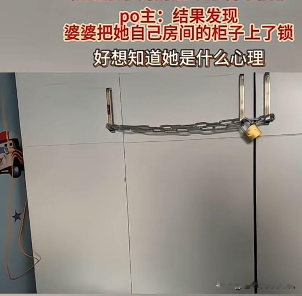 婆婆要外出几天,把她屋里衣柜的门用锁链给锁上了。 内蒙古一女子说她婆婆要出门几天,自己孩子又需要人帮忙看着,自己娘家妈妈也有事,于是把娘家奶奶给请了过来,帮忙看几天孩子。 发现婆婆把她自己屋里的柜门给锁上了,不知道婆婆是什么心理。 不锁还好,一锁就特别想给她把锁破了,看看里面到底有什么值得锁的。 其实大可不必烦心,婆婆的屋子不进去就好了。