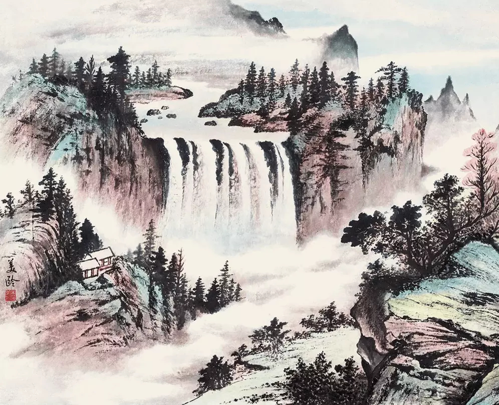 宋美龄国画山水。宋美龄(1897―2003),民国传奇女子。在漫长的106年光阴中,她犹如一株特立独行的花,将芬芳和传奇散播到中华大地。作为中华民国的第一夫人,她是 20 世纪国际上最具影响力的女性人物之一。她出身高贵,博学多才,交际能力出众,精通六国语言,是个不折不扣的语言天才。除此之外,她在绘画方面的造诣也是极高,琴棋书画更是不在话下,是一个公认的大才女。宋美龄享年106岁,绘画是她终年爱好,曾向张大千学习山水画,拜黄君璧、郑曼青为师,学习花鸟画,宋美龄的山水画构图妥贴,用笔精到,清逸处有灵气,沉厚处韵苍润,古趣昂然。这就是中国风遇见艺术