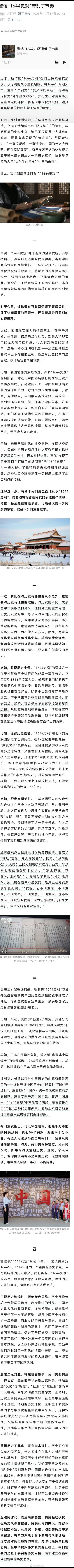 浙江宣传发了篇文章:警惕“1644史观”带乱了节奏 。