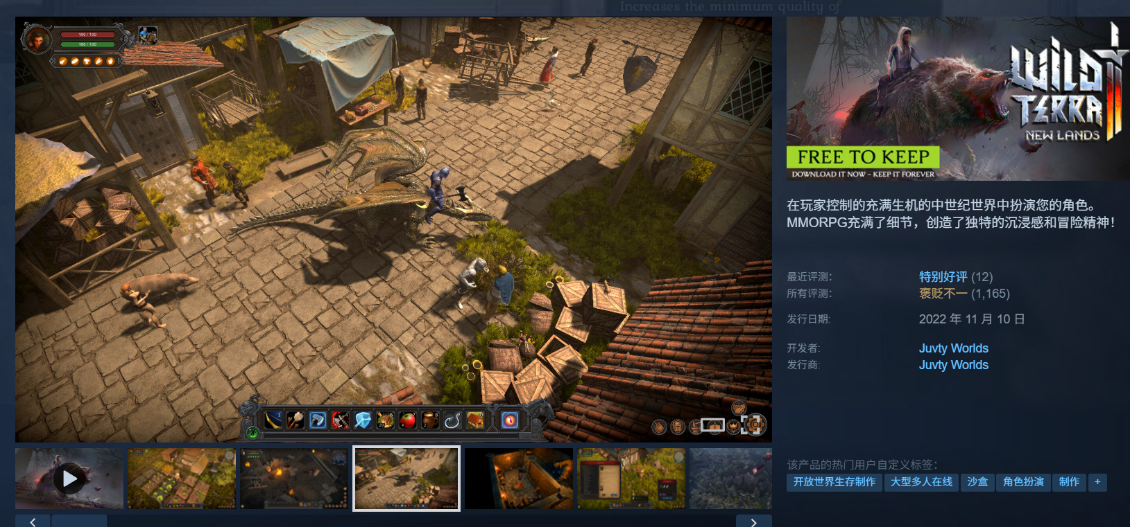 【Steam喜+1,原价165元的《荒野之地2》免费送】中世纪MMORPG游戏《